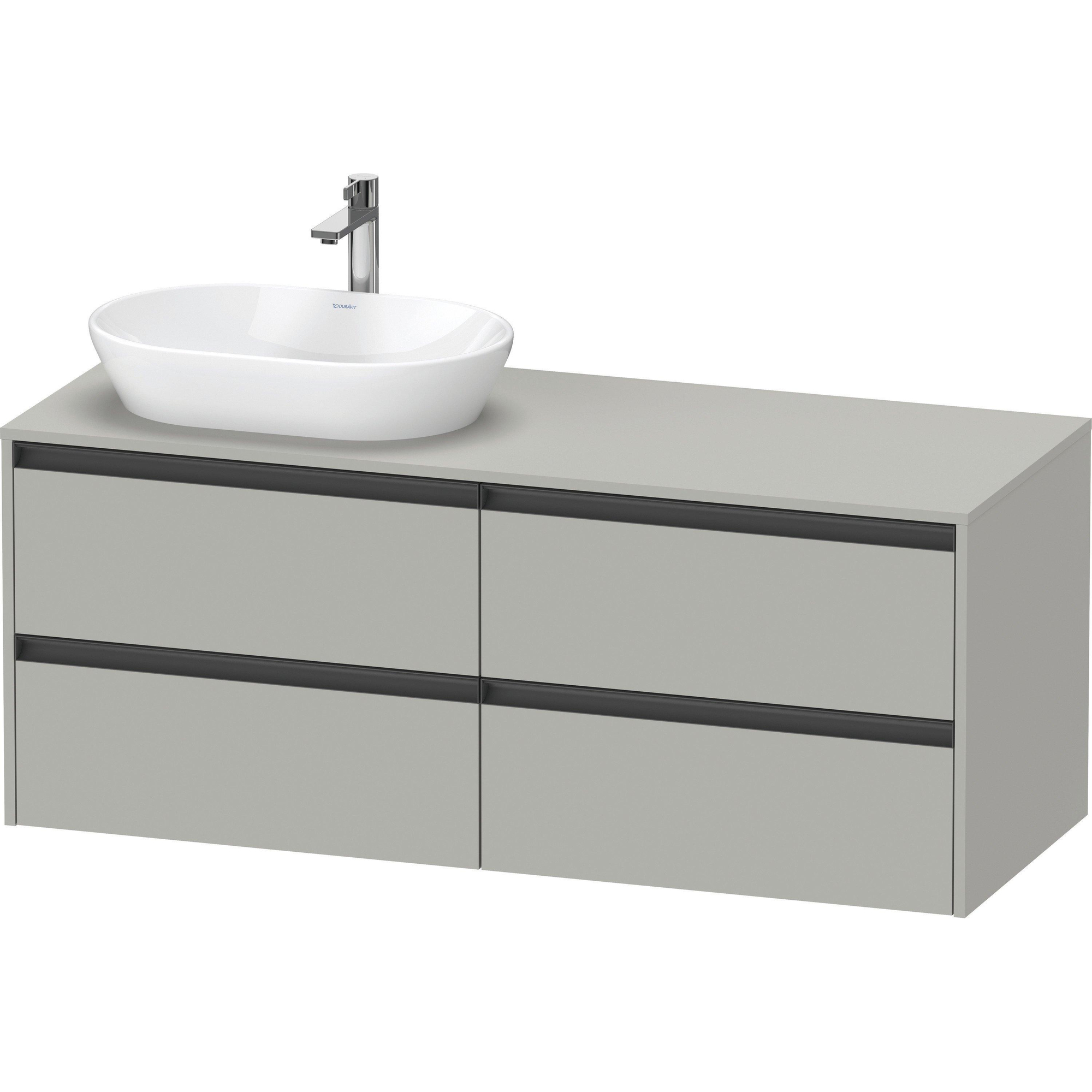 Duravit Ketho 2 meuble sous-lavabo avec plan de console avec 4 tiroirs pour vasque à gauche 140x55x56.8cm avec poignées anthracite gris béton mat