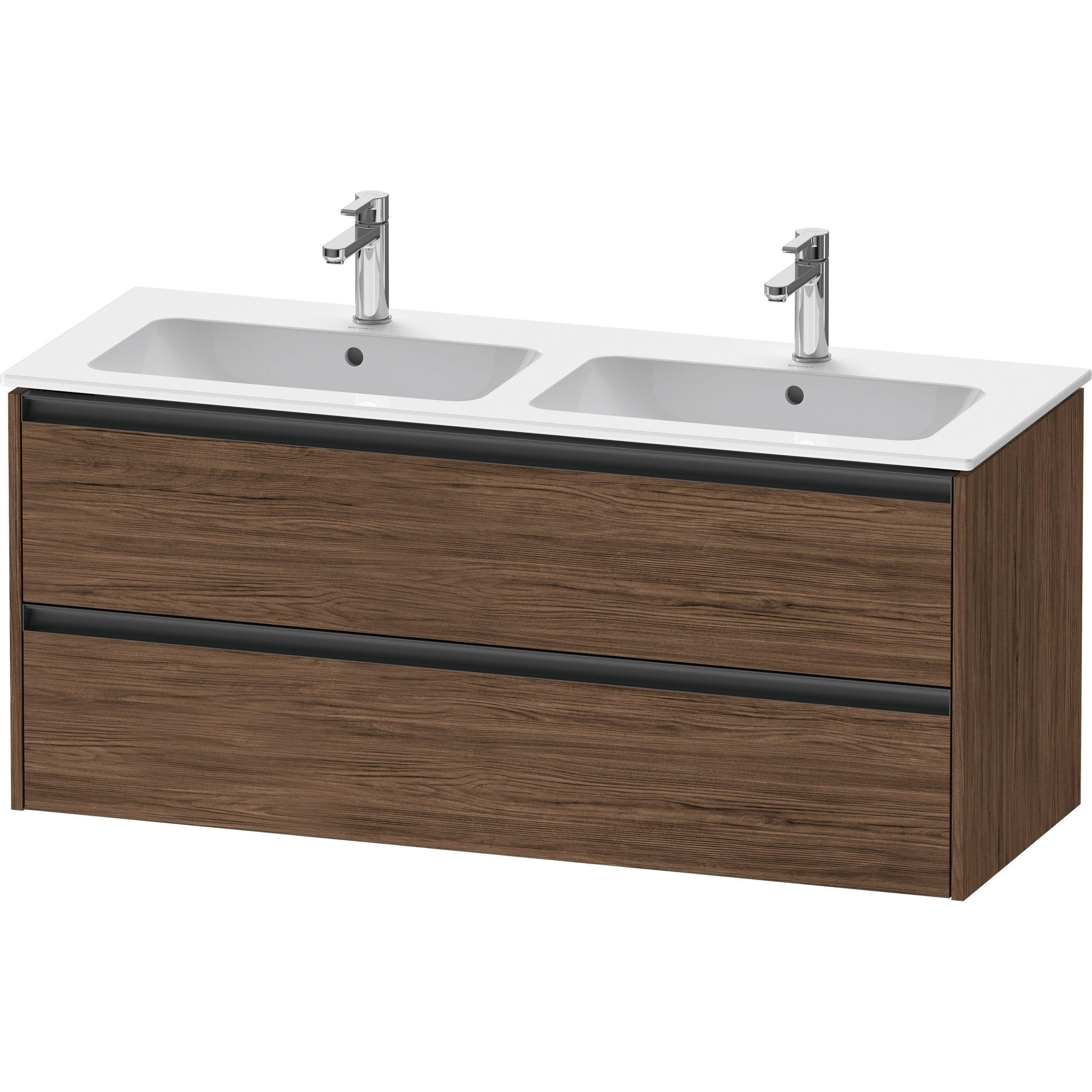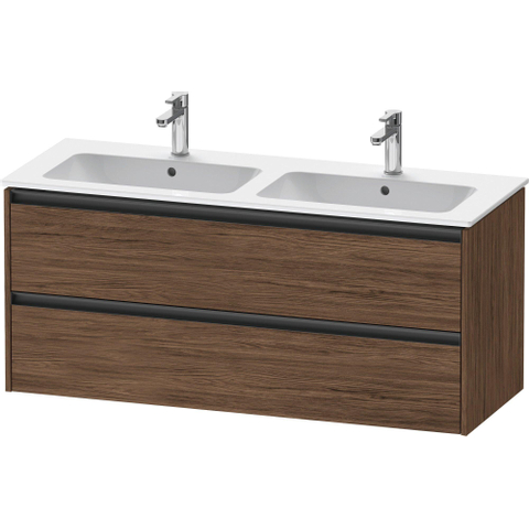 Duravit Ketho 2 meuble bas sous lavabo avec 2 tiroirs pour double lavabo 128x48x55cm avec poignées anthracite noyer foncé mat