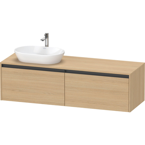 Duravit Ketho 2 meuble sous-lavabo avec plateau console avec 2 tiroirs pour lavabo à poser à gauche 160x55x45.9cm avec poignées chêne naturel mat anthracite