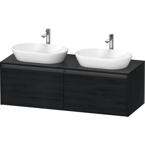 Duravit Ketho 2 meuble bas pour lavabo incl. plan de console avec 2 tiroirs pour vasques doubles 140x55x45.9cm avec poignées chêne anthracite noir mat