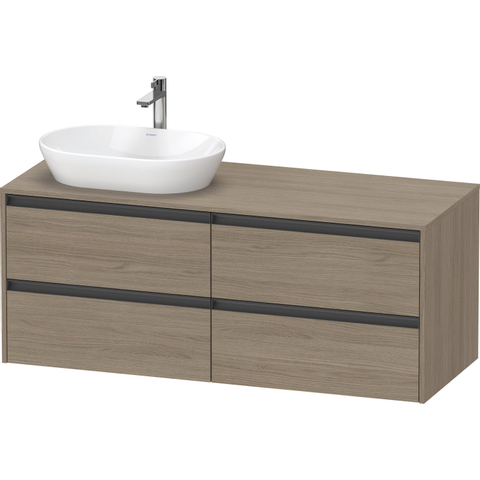 Duravit Ketho 2 meuble sous-lavabo avec plan de console avec 4 tiroirs pour vasque à gauche 140x55x56.8cm avec poignées chêne anthracite terra mat