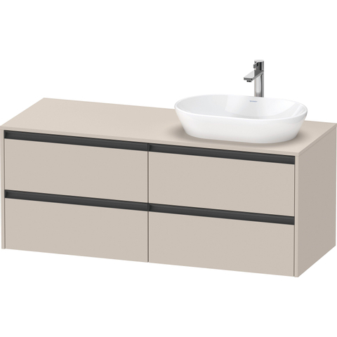 Duravit Ketho 2 meuble sous-lavabo avec plan console avec 4 tiroirs pour vasque à droite 140x55x56.8cm avec poignées anthracite taupe mat