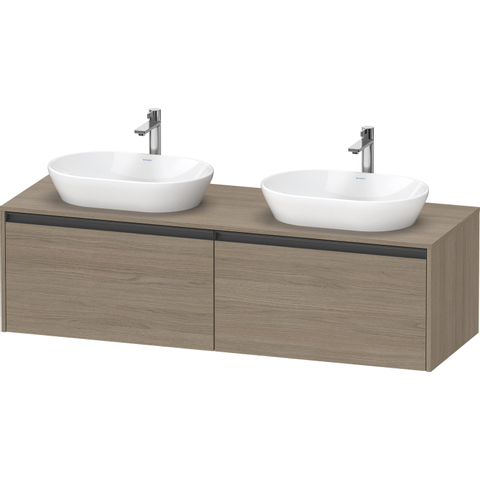 Duravit Ketho 2 meuble sous-lavabo avec plan de console avec 2 tiroirs pour doubles vasques 160x55x45,9cm avec poignées chêne anthracite terra mat