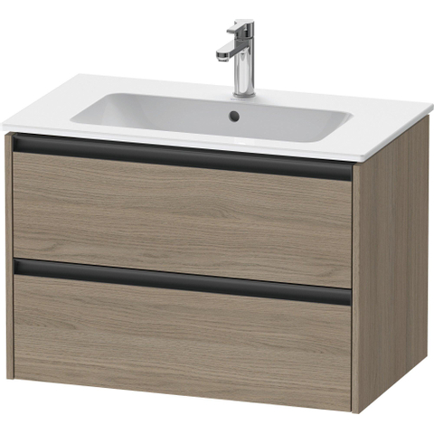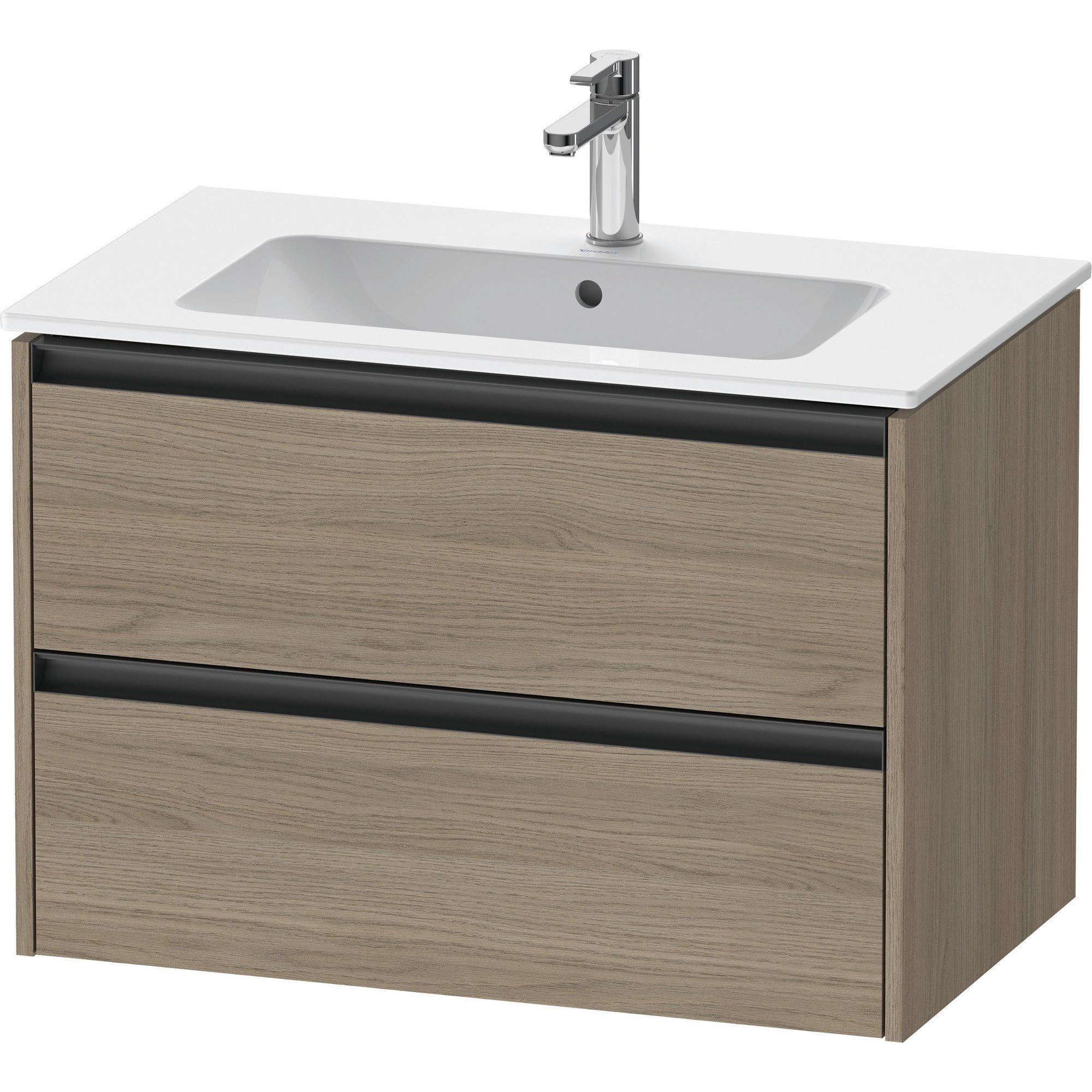 Duravit Ketho 2 meuble de salle de bains sous lavabo avec 2 tiroirs 81x48x55cm avec poignées chêne anthracite terra mat