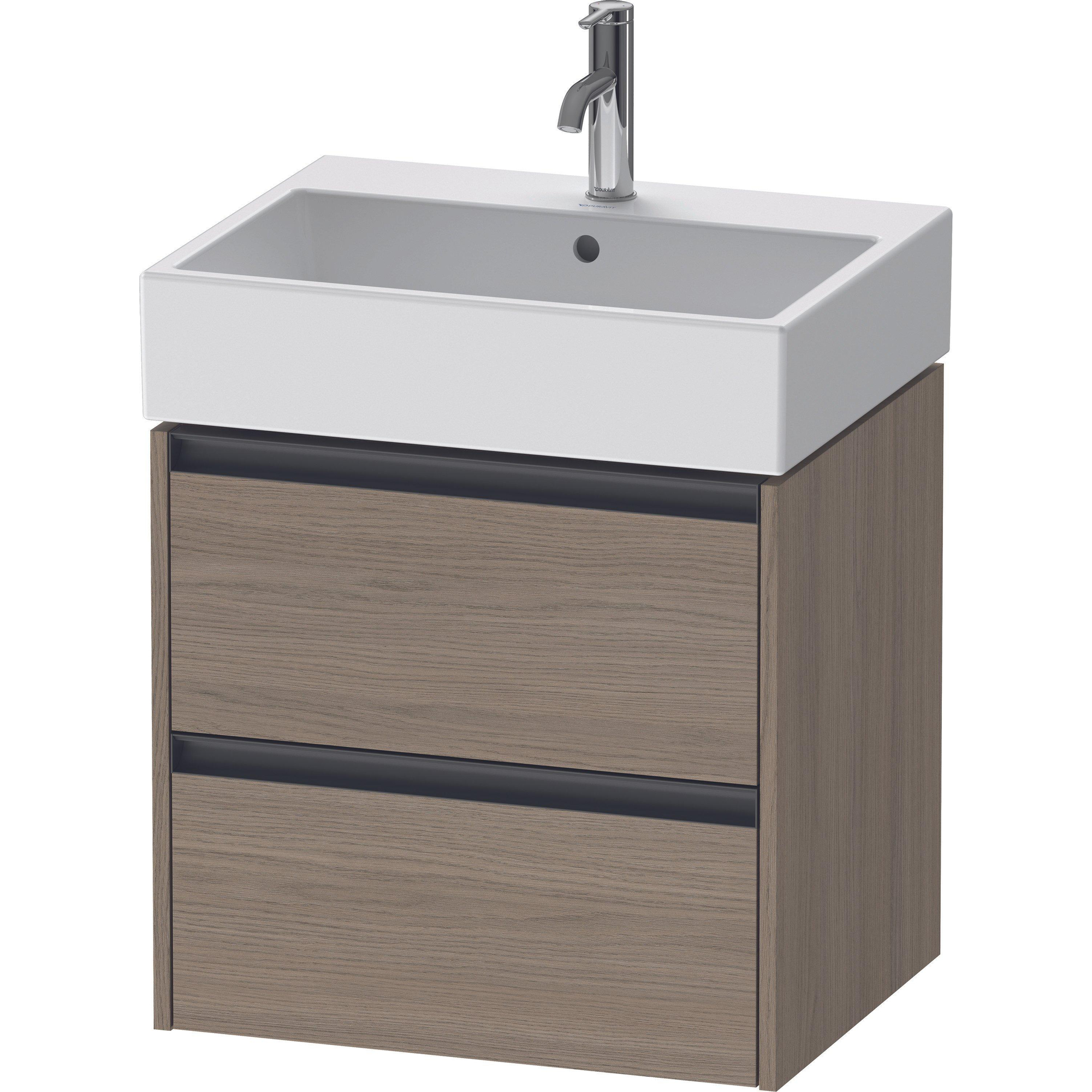Duravit Ketho 2 meuble sous-lavabo - 2 tiroirs - 58.4x46x54.9cm - poignées anthracite - chêne terra mat