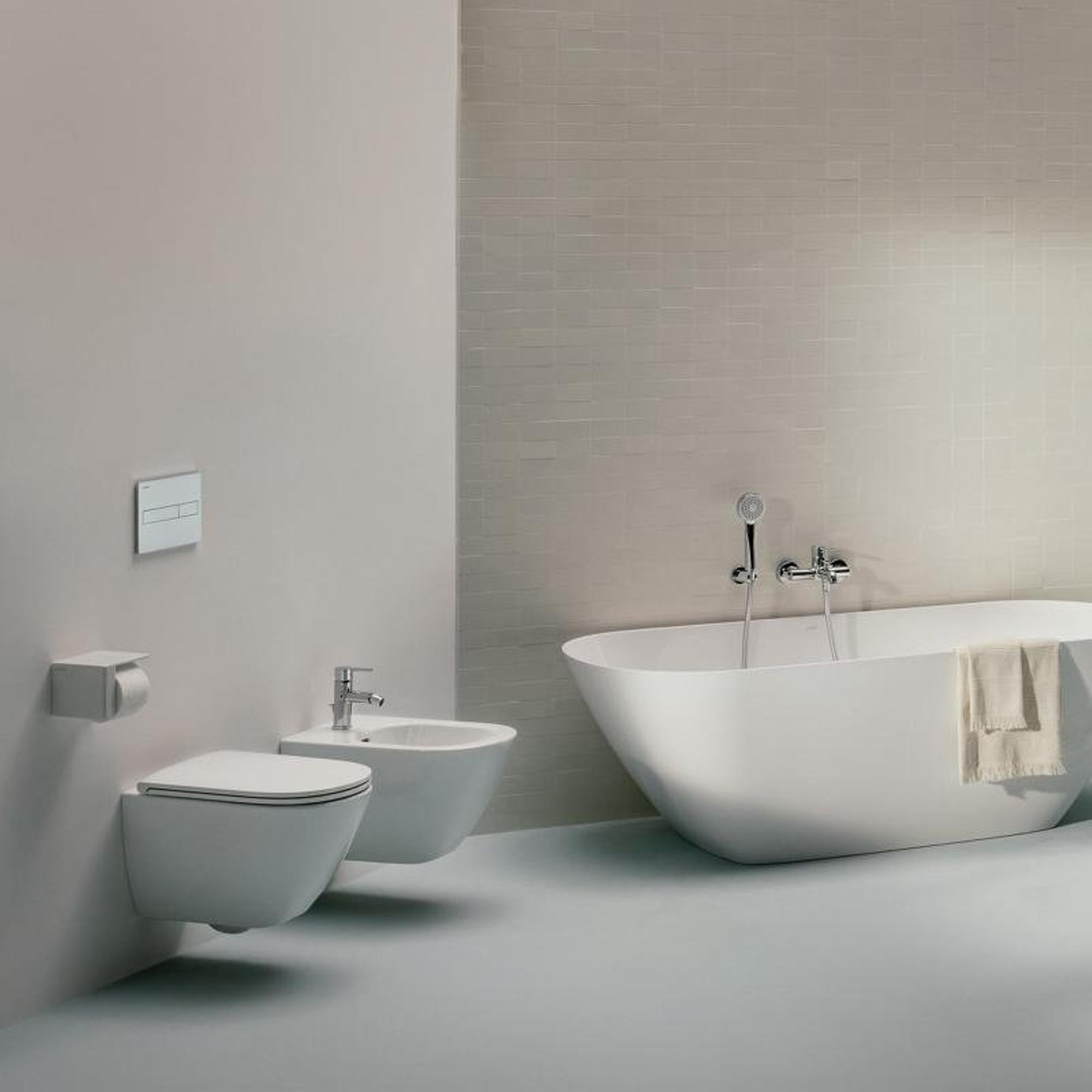 - Toilette suspendue, ce qui laisse le sol libre et donne à la pièce une impression d’espace plus grande.