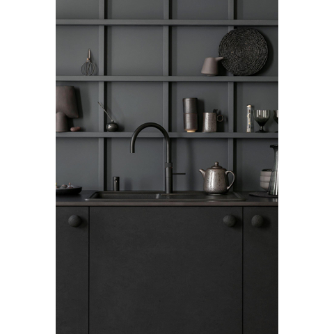 Avec le bec rond et la finition noire mate, vous ajoutez immédiatement un véritable point de mire à votre cuisine. Le design est minimaliste et intemporel, ce qui permet à ce robinet de bien se combiner avec des façades épurées, des plans de travail sombres et des appareils modernes. Le bec est pivotant, ce qui est extrêmement pratique pour remplir les casseroles, rincer les légumes ou nettoyer l'évier. Vous bénéficiez de la flexibilité d'un mitigeur classique, mais avec la fonction supplémentaire d'eau bouillante directement au robinet. La cuisson devient ainsi plus rapide et plus efficace : vous préparez pâtes, riz ou légumes en un clin d'œil, et une tasse de thé ou de café est prête en quelques secondes. Vous gagnez ainsi non seulement du temps, mais aussi de la place, car une bouilloire séparée devient superflue.
