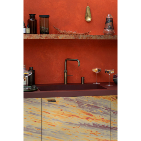 Quooker BE Classic Fusion Square robinet d'eau bouillante - bec pivotant - réservoir Combi - Eau chaude / bouillante - Laiton patiné