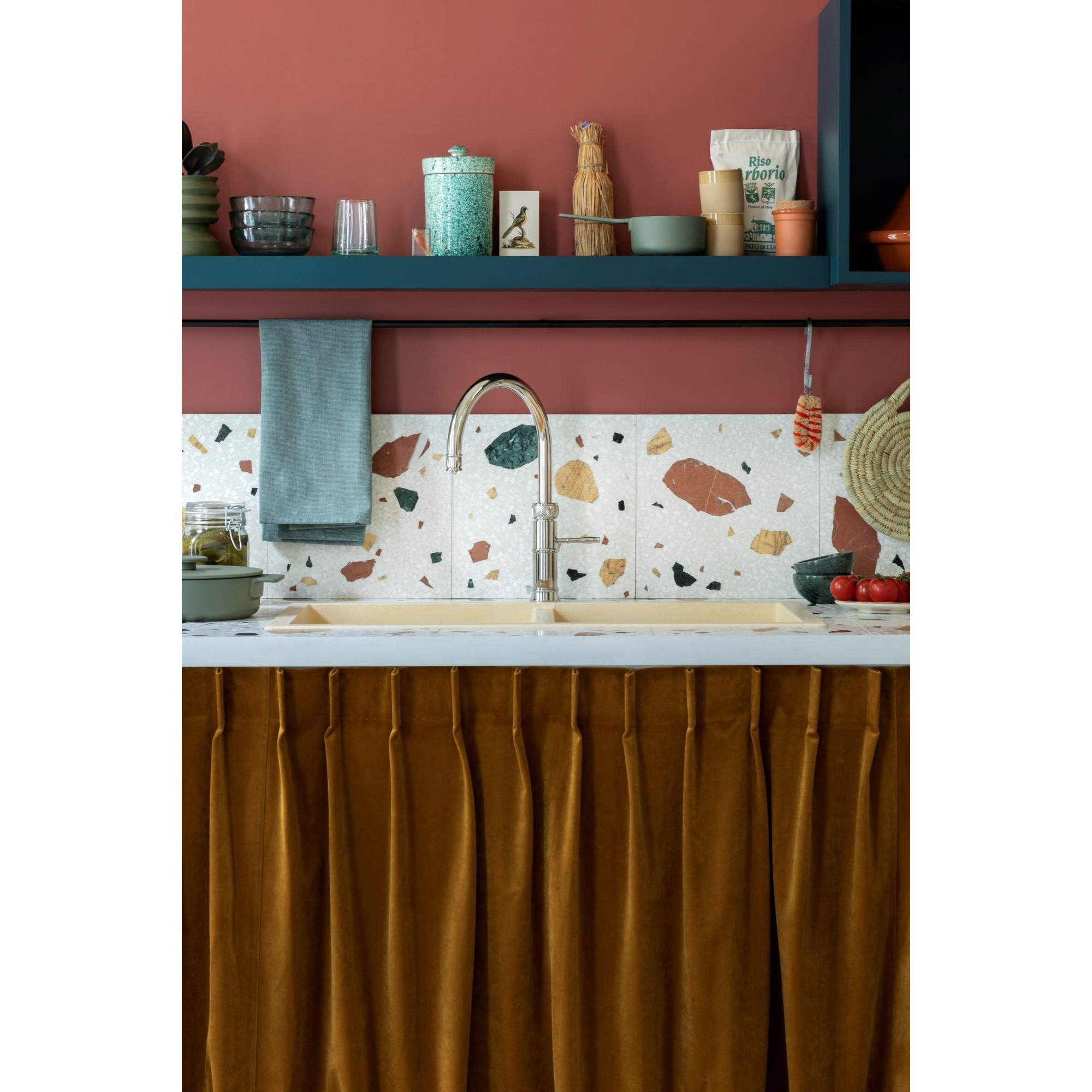 Vous recherchez plus de confort et d’efficacité dans la cuisine, sans faire de compromis sur l’esthétique ? Dans ce cas, un mitigeur de cuisine tout-en-un avec fonction eau bouillante est un choix particulièrement judicieux. Idéal si vous préparez souvent du thé, aimez cuisiner ou si vous n’avez simplement pas le temps ni l’envie d’attendre une bouilloire ou un chauffe-eau lent. Grâce au mitigeur intégré, vous utilisez le même robinet pour l’eau froide, chaude et bouillante, ce qui apporte du calme sur votre plan de travail et un aspect rangé et intemporel. Le bec rond s’intègre parfaitement aussi bien dans les cuisines classiques que dans les cuisines campagnardes modernes, tandis que la finition chromée se combine facilement avec les autres appareils de cuisine. Cette solution est particulièrement intéressante si vous avez de longs temps d’attente pour l’eau chaude ou si vous utilisez encore un chauffe-eau de cuisine séparé, car elle regroupe de manière pratique confort, efficacité énergétique et sécurité en un seul système.