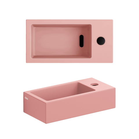 Clou Flush 3 lave-mains 36x18cm avec trou de robinet à droite en céramique rose mat