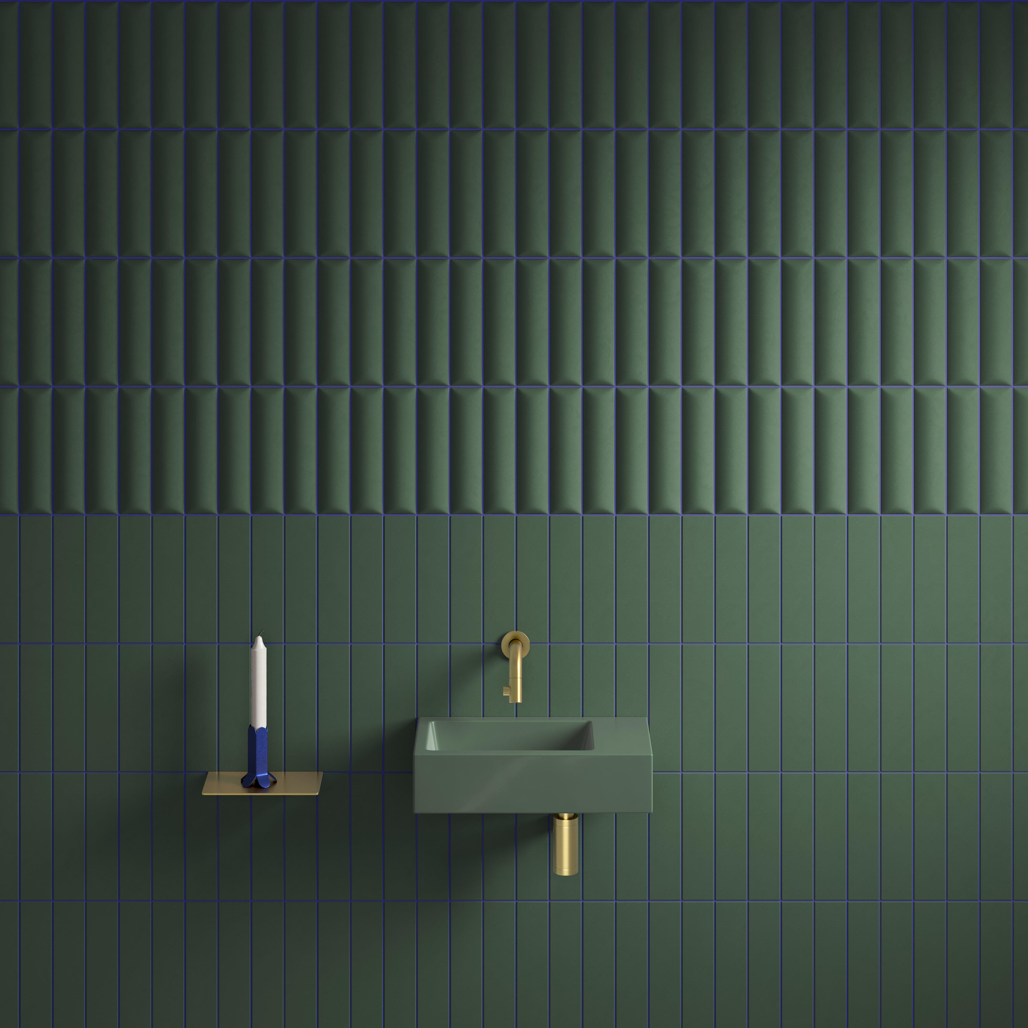 Clou Flush 3 lave-mains 36x18cm robinet droit mat pin vert céramique.