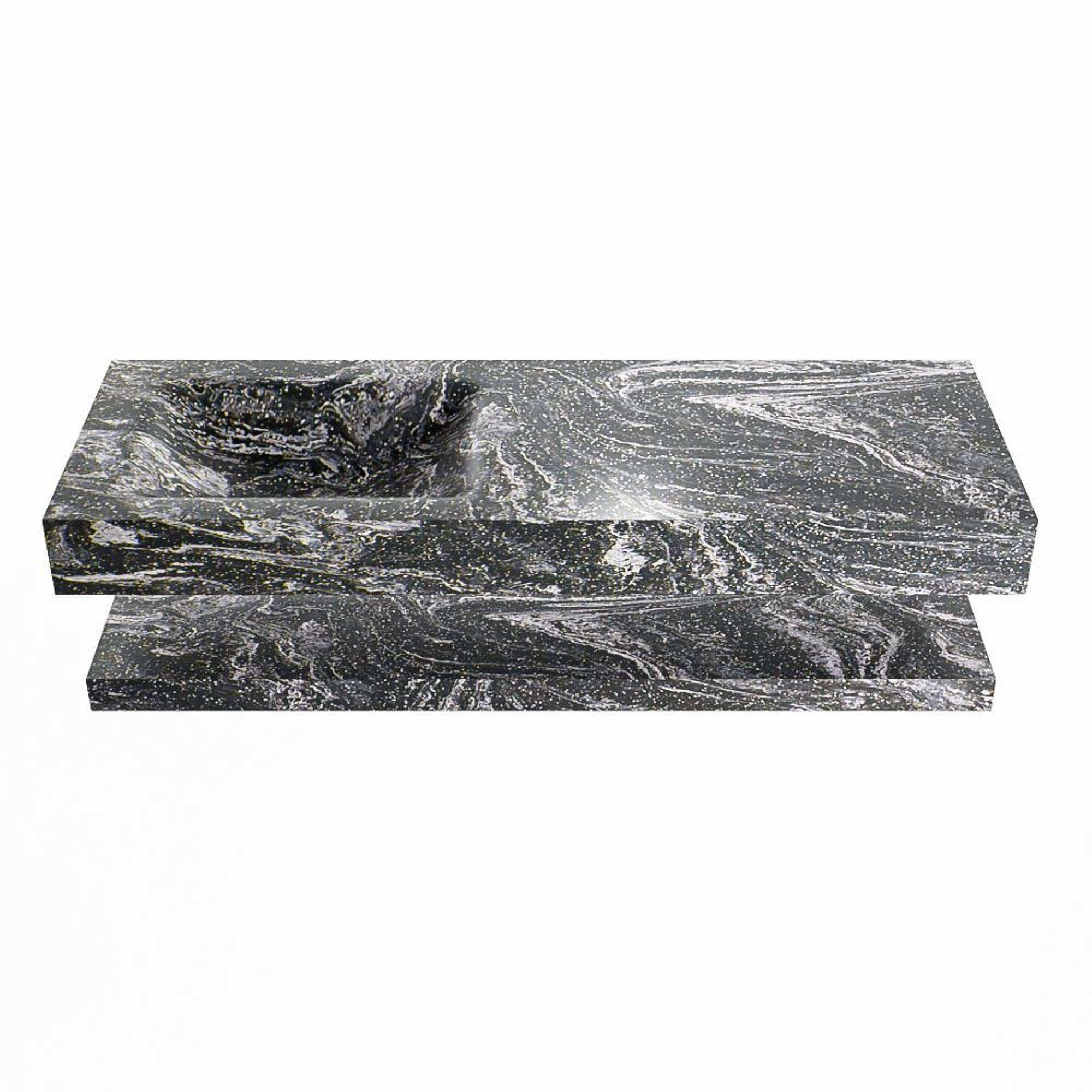 Mondiaz ALAN-DLUX Ensemble de meuble - 130cm - meuble Lava mat - 0 tiroirs - Lavabo Cloud Lava suspendu - vasque Gauche - 0 trous de robinet
