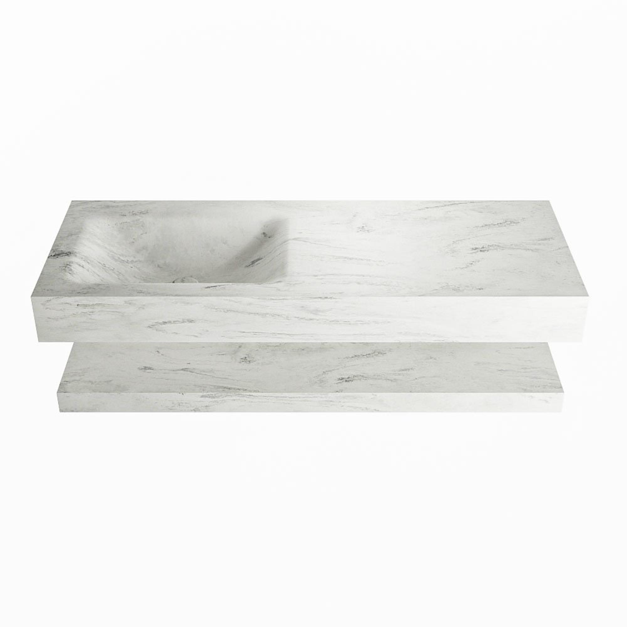 Mondiaz ALAN-DLUX Ensemble de meuble - 120cm - meuble Opalo mat - 0 tiroirs - Lavabo Cloud Opalo suspendu - vasque Gauche - 1 trou de robinet