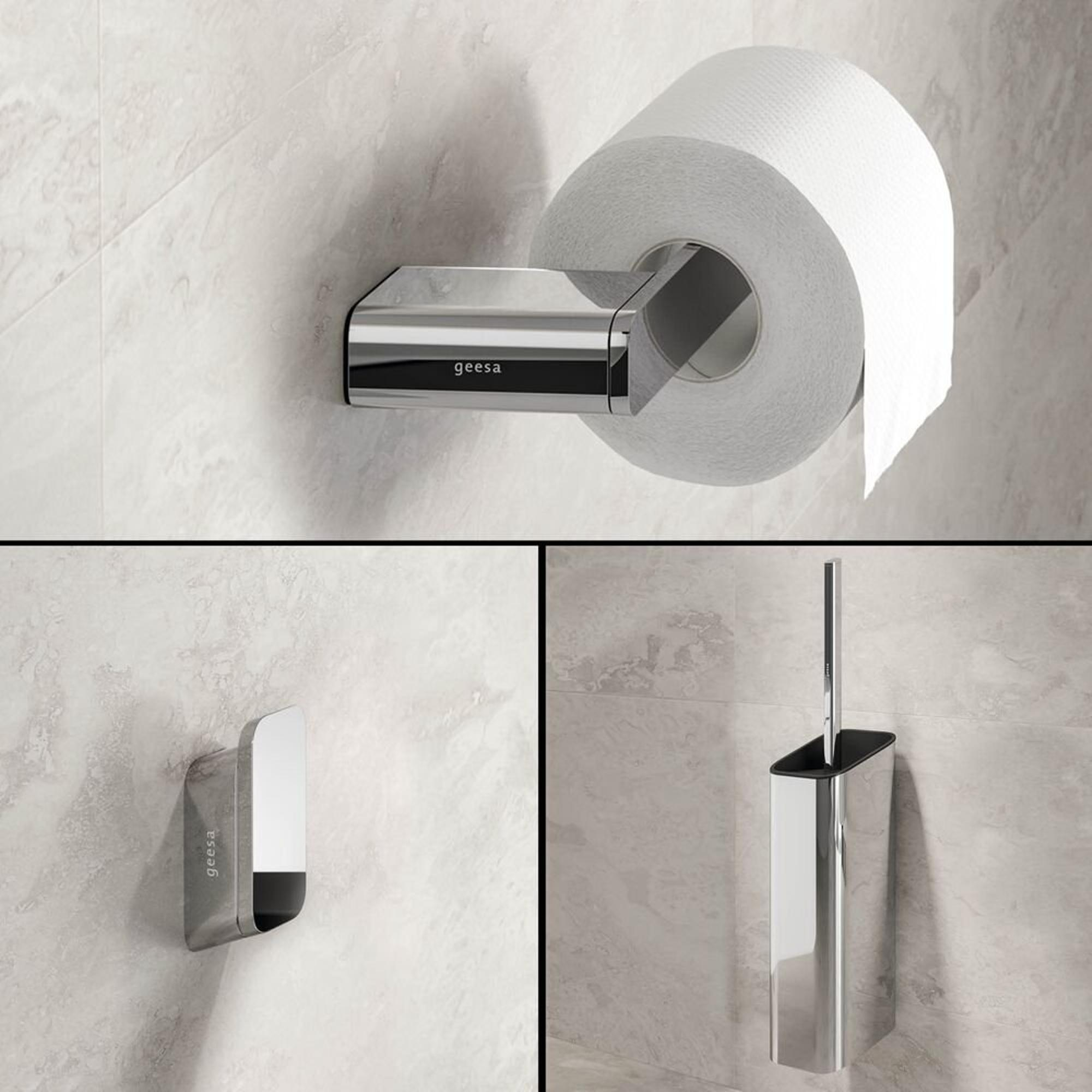 Geesa Shift Set d'accessoires WC - Brosse de toilette avec support - Porte-rouleau de toilette sans couvercle - Crochet à serviette - Chrome DESTOCKAGE