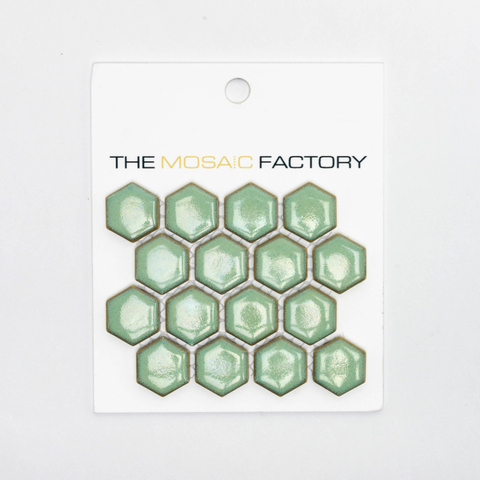 SAMPLE The Mosaic Factory Barcelona carreau mosaïque 2.3x2.6x0.5cm Hexagone Porcelaine émaillée Vert antique avec bordure rétro