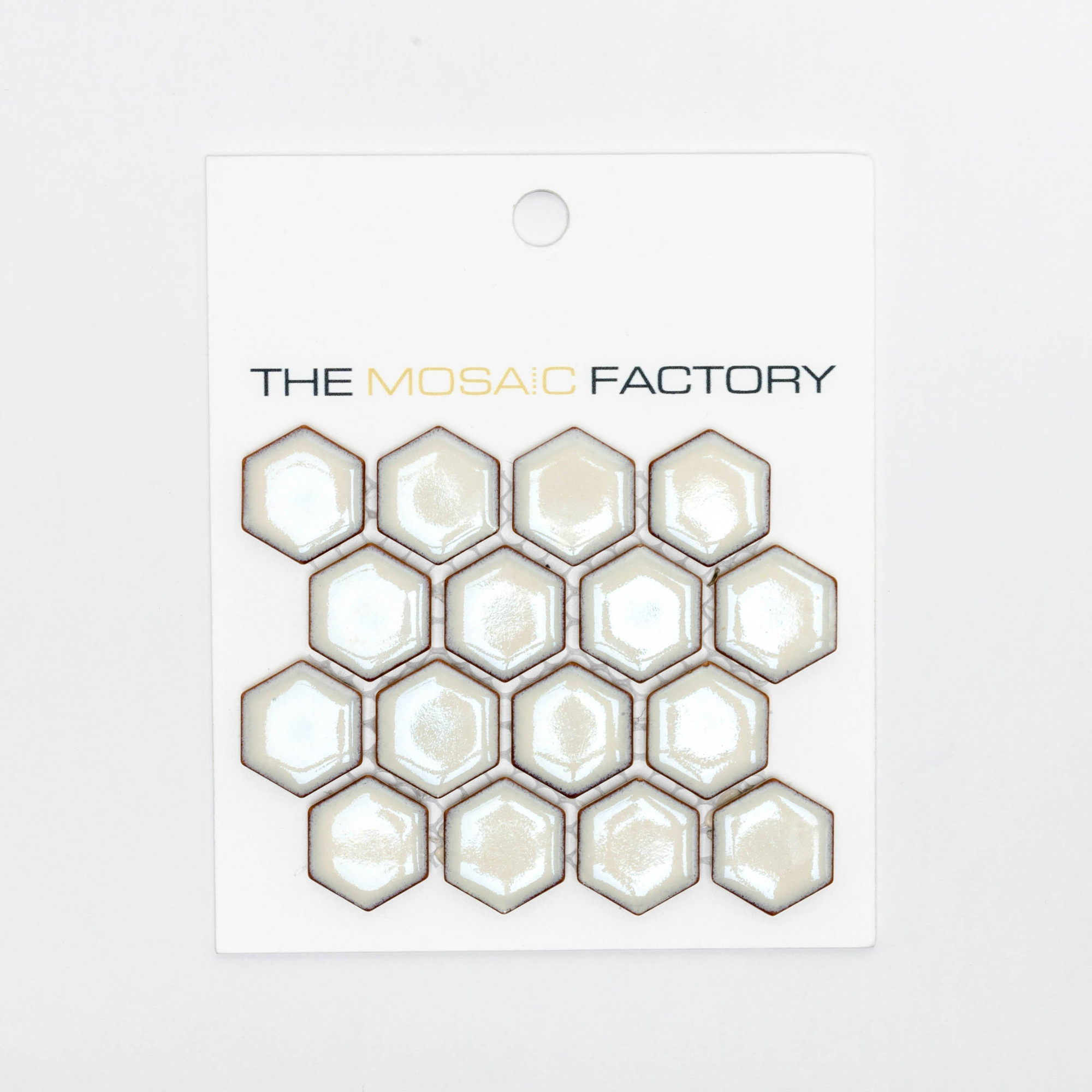 SAMPLE The Mosaic Factory Barcelona carreau mosaïque 2.3x2.6x0.5cm Hexagone Porcelaine émaillée blanc doux avec bord rétro