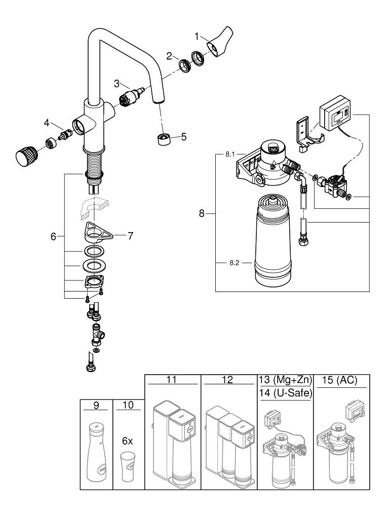 filtre GROHE Blue S-Size et tête de filtre avec ajustement de dureté de l'eau flexible