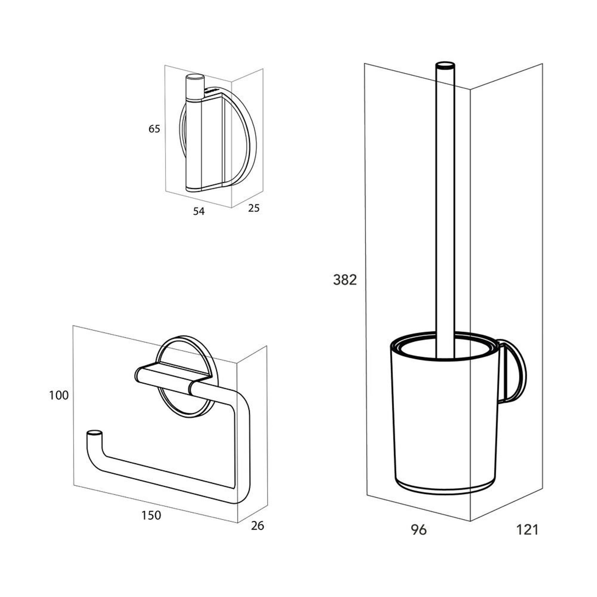 Avec cet ensemble, vous aménagez vos toilettes de façon logique et confortable : le porte-rouleau de papier toilette sans couvercle vous permet d’accéder rapidement au papier et garantit un déroulement fluide du rouleau, sans couvercle gênant. Le balai de toilettes avec support se tient discrètement à côté de la cuvette et reste toujours à portée de main pour nettoyer rapidement le WC. Vous utilisez la patère pour une serviette invité ou un essuie-mains, afin de pouvoir vous sécher les mains de manière hygiénique, sans avoir besoin de crochets supplémentaires ou de solutions improvisées. Comme tout est fixé au mur, le sol reste dégagé et le nettoyage est plus facile. Vous profitez ainsi de toilettes pratiques, ordonnées et confortables, même si elles sont très petites.