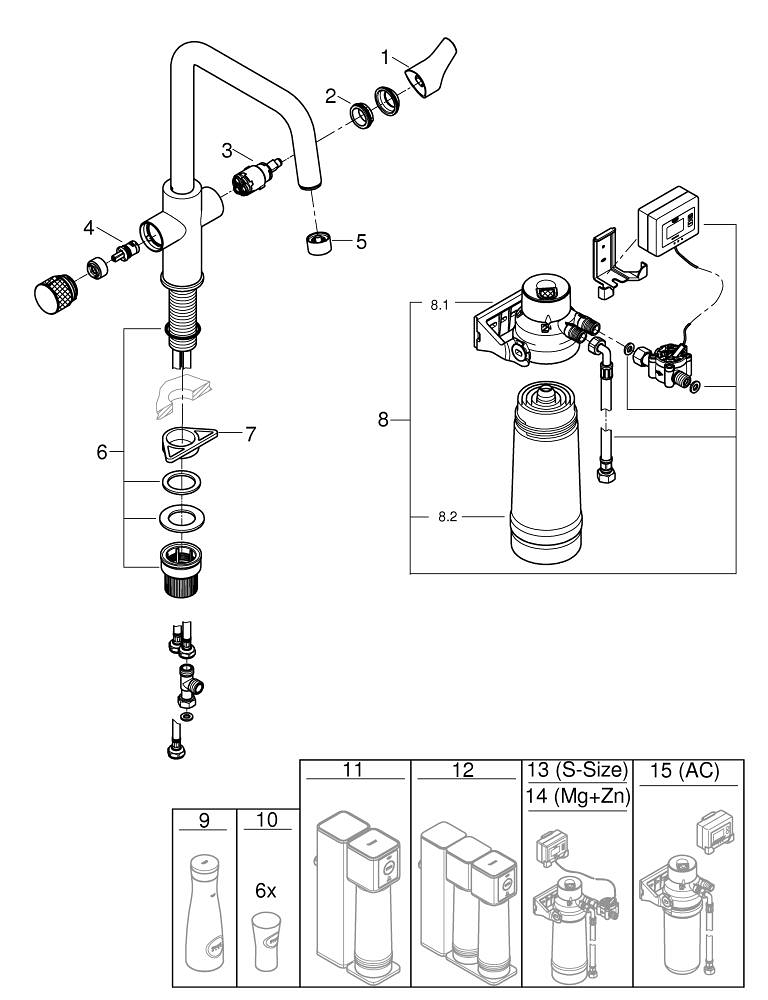 filtre GROHE Blue Ultrasafe retient les microplastiques > 1 µm, 99,999 % des bactéries et 99,5% du plomb