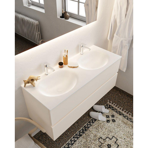 MONDIAZ VICA Ensemble de meuble salle de bain - 120cm - 2 tiroirs - lavabo Moon double - 2 trous de robinet - solid surface lin DESTOCKAGE