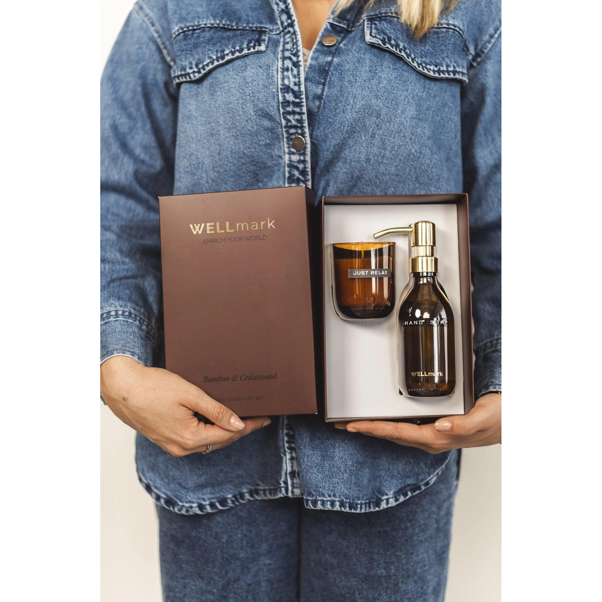 Wellmark Discover coffret cadeau - savon pour les mains et bougie parfumée - bambou - verre brun
