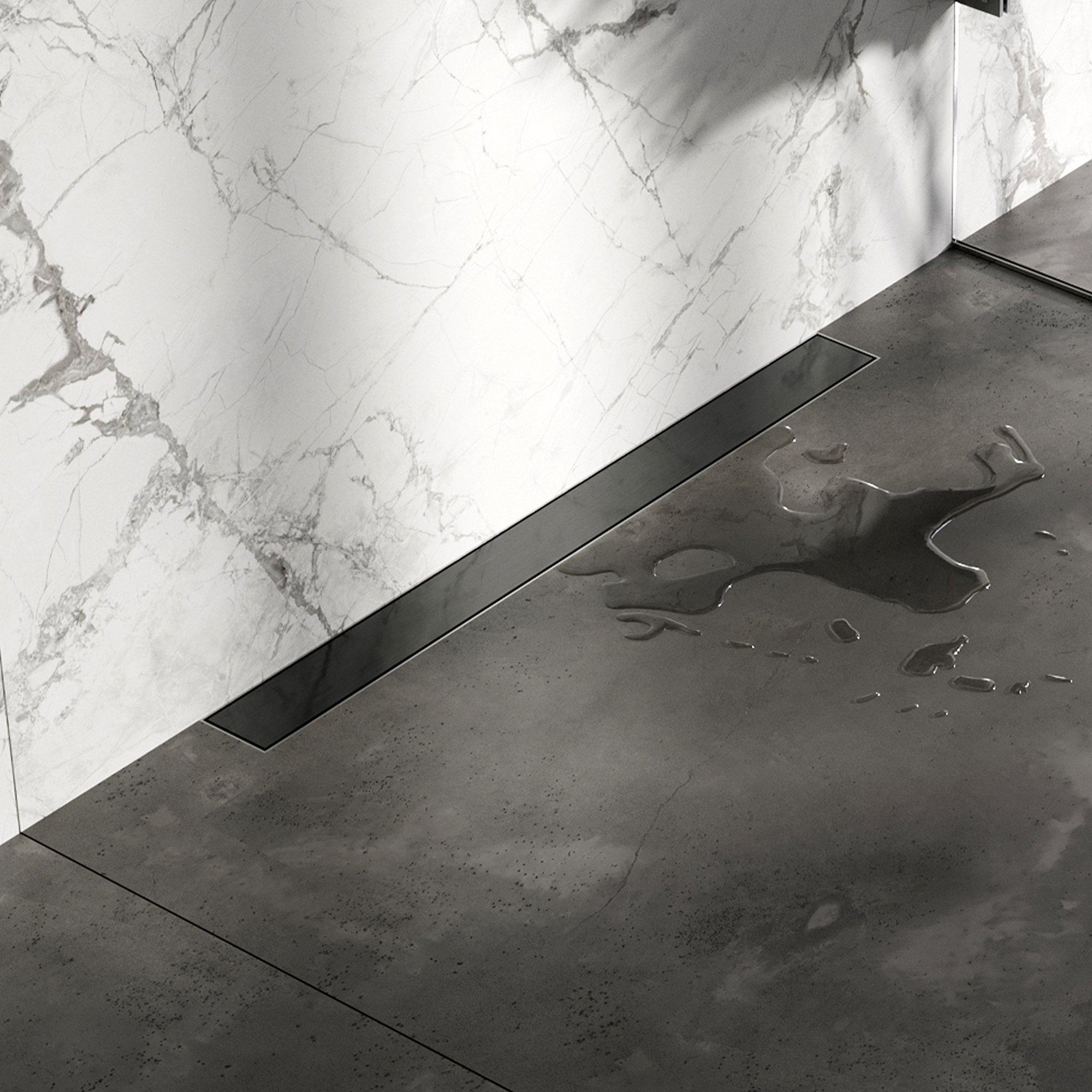 Le Caniveau de douche Brauer se distingue par son design stylé et sa finition en gunmetal brossé. Cette combinaison de couleur et de matériau donne au caniveau de douche une apparence luxueuse qui s'harmonise parfaitement avec les salles de bain modernes. La grille d'insertion de carrelage est réversible, vous permettant de choisir entre une grille discrète ou un accent frappant, selon vos préférences et le style de votre intérieur.