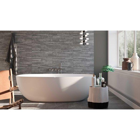 La combinaison du format allongé 30x60 avec la structure décorative en gris Shadow mat crée une base calme mais néanmoins pleine de caractère dans votre salle de bains. La couleur appartient à la gamme des tons gris, ce qui permet de la combiner sans effort avec d’autres nuances de gris, des produits sanitaires blancs et des robinets ou accessoires noir mat. Le décor apporte juste un peu plus de profondeur au mur ou au sol, sans devenir trop criard. Vous créez ainsi une ambiance d’hôtel chic ou un look spa minimaliste, selon la façon dont vous combinez le carreau. Grâce à la finition mate, il reflète peu la lumière, ce qui est agréable dans les pièces avec de nombreux spots ou beaucoup de lumière du jour, et il camoufle en plus subtilement toute irrégularité de saleté et de gouttes d’eau.