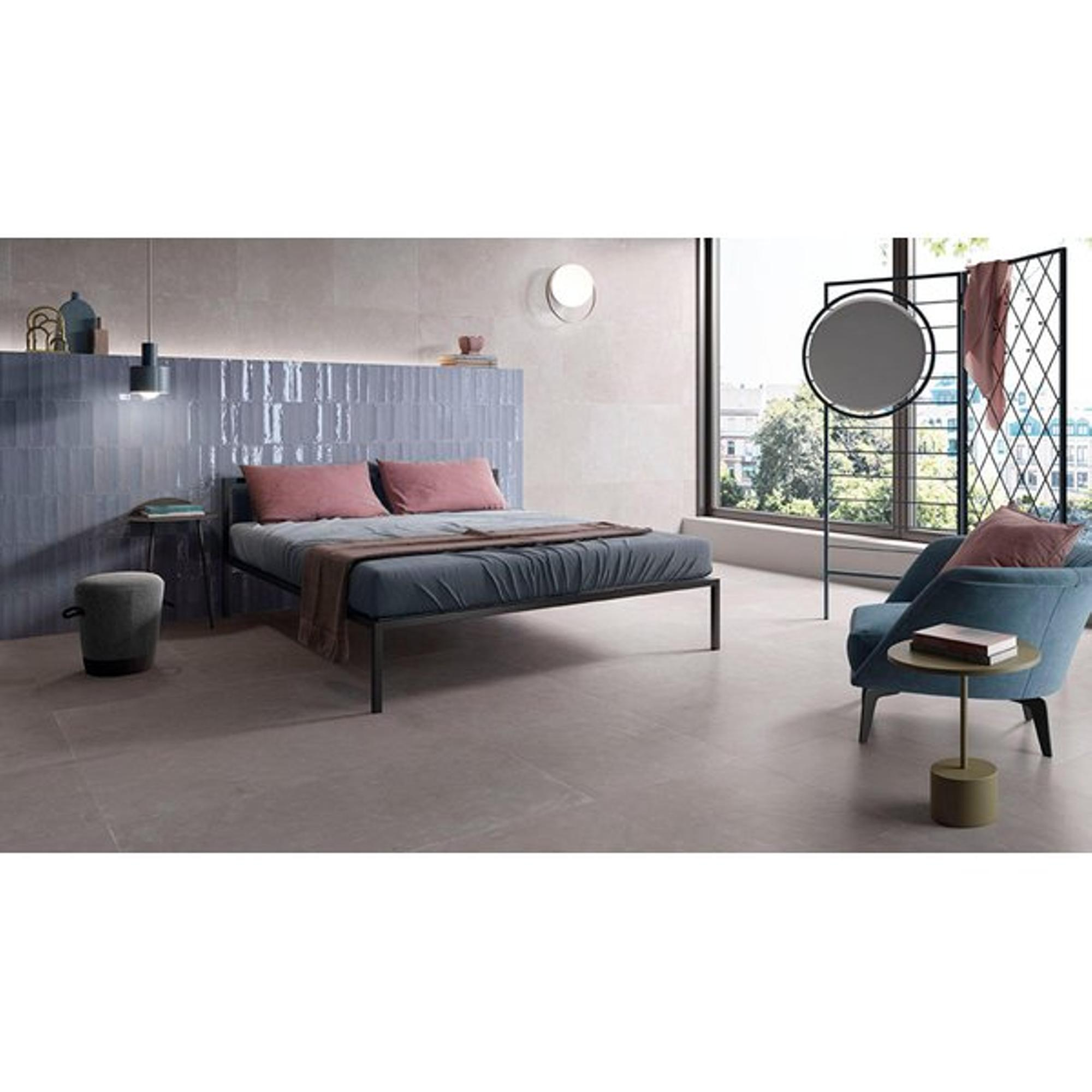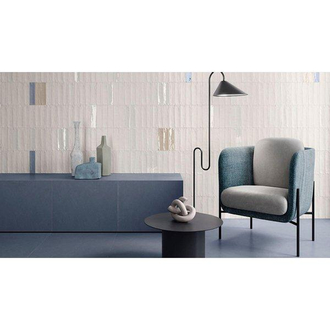 Avec le format d’environ 6x24 cm, vous disposez d’une grande liberté dans le motif de pose. Opterez-vous pour un jointoiement en quinconce classique, un calepinage moderne empilé horizontalement ou au contraire un motif en chevrons marquant sur le mur ? Grâce au format allongé, vous pouvez jouer optiquement avec l’espace : posé à l’horizontale, il fait paraître le mur plus large, posé à la verticale, la pièce semble plus haute. Les carreaux ne sont pas rectifiés, ce qui crée des joints subtils et un aspect authentique, comparable aux carreaux métro mais en plus raffiné. Vous pouvez ainsi créer un rendu haut de gamme avec relativement peu de matériau.
