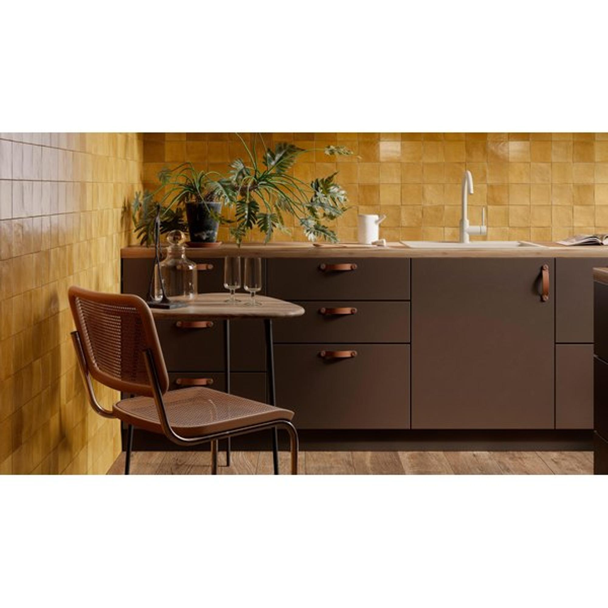Cet échantillon est idéal si vous souhaitez d’abord voir en vrai l’ambiance, la couleur et la brillance d’un carreau mural en céramique avant de faire un choix définitif. Surtout pour des carreaux de caractère avec une teinte marquante, comme le kaki, il est agréable de voir comment la surface réagit à la lumière dans votre salle de bains, vos toilettes ou votre cuisine. Grâce à un format compact, vous pouvez facilement tenir le carreau à côté de votre sol, de votre meuble ou de la couleur du joint, afin d’estimer correctement si tout s’accorde bien. Vous réduisez ainsi le risque d’un mauvais achat et vous faites plus sereinement le pas vers une finition murale complète qui correspond réellement à votre style d’intérieur.