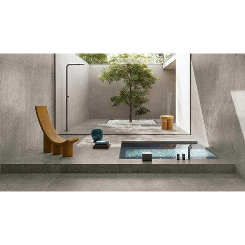 La couleur Titanio offre un aspect béton gris moderne avec une finition mate, qui s’accorde parfaitement avec les tendances actuelles en matière de salles de bains. La surface présente de subtiles nuances, ce qui donne au sol un aspect vivant sans être chargé. Les carrelages de sol mats sont en outre indulgents à l’usage : les petites taches ou éclaboussures d’eau se remarquent moins que sur des surfaces brillantes. Associez cette teinte à des bois chaleureux pour une ambiance scandinave ou à des accents foncés pour un style plus industriel. Vous pouvez ainsi exprimer facilement votre style personnel, tout en conservant une base intemporelle et facile à assortir.