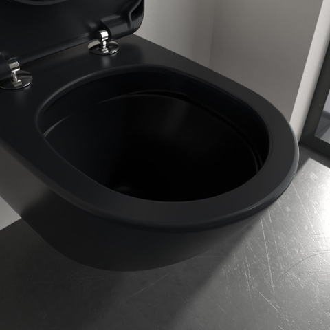 La couleur noire mate en Pure Black CeramicPlus donne à votre salle de bains ou votre WC un aspect luxueux affirmé mais néanmoins discret. Le design fin, suspendu, avec forme ronde et lignes épurées, crée une impression d’espace et de calme, car le sol reste dégagé et la technique est soigneusement dissimulée. Cela en fait une combinaison parfaite avec des robinets noirs, des carreaux sombres ou, au contraire, un contraste marqué dans un espace clair et serein. Grâce à la conception sans bride, vous ne voyez pas de bords gênants ni de joints difficiles à nettoyer, ce qui rend l’ensemble encore plus épuré. Vous créez ainsi, avec un seul élément, un ensemble haut de gamme et cohérent dans lequel le style, le confort et le design sanitaire moderne se rejoignent sans effort.