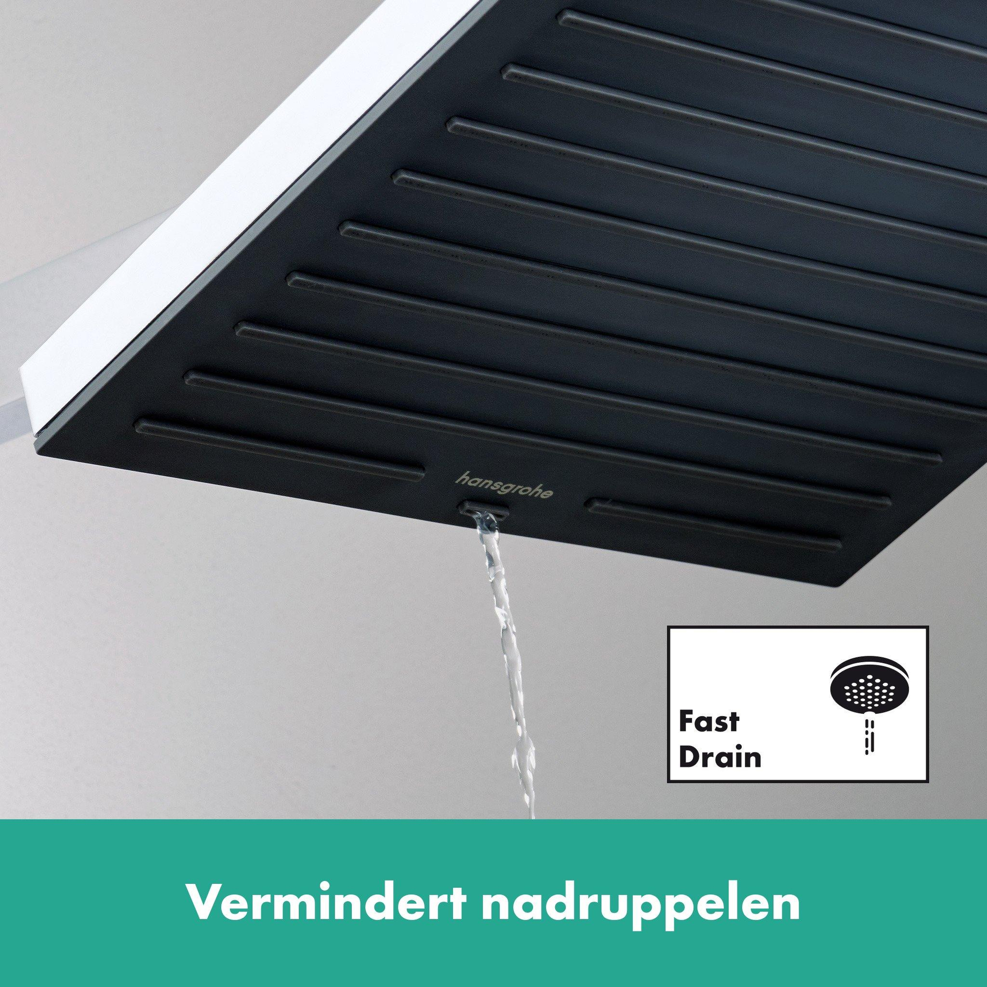Avec la technologie EcoSmart, vous consommez jusqu'à 40 % d'eau en moins qu'avec une pomme de douche moyenne. Cela signifie non seulement une facture d'eau réduite, mais aussi une contribution consciente à l'environnement. Le jet PowderRain innovant vous enveloppe de fines gouttes d'eau douces qui procurent une sensation intensément rafraîchissante sans gaspiller inutilement l'eau. De plus, le système Fast Drain permet à l'eau résiduelle de s'écouler rapidement, réduisant ainsi la formation de calcaire et prolongeant la durée de vie de la pomme de douche. Vous profitez ainsi durablement de performances et de confort optimaux.
