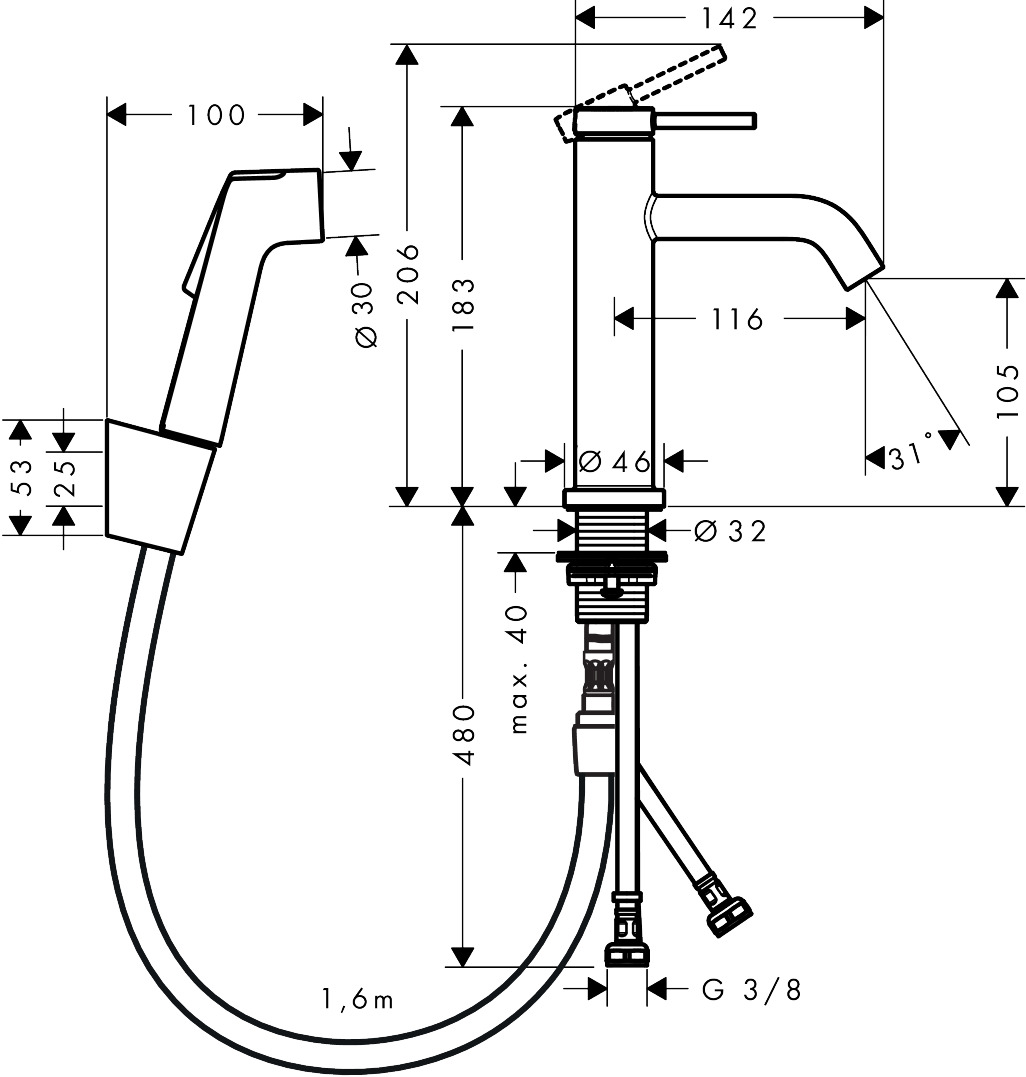 - Douchette intégrée avec flexible de 1,60 mètre pour un confort d'utilisation supplémentaire
