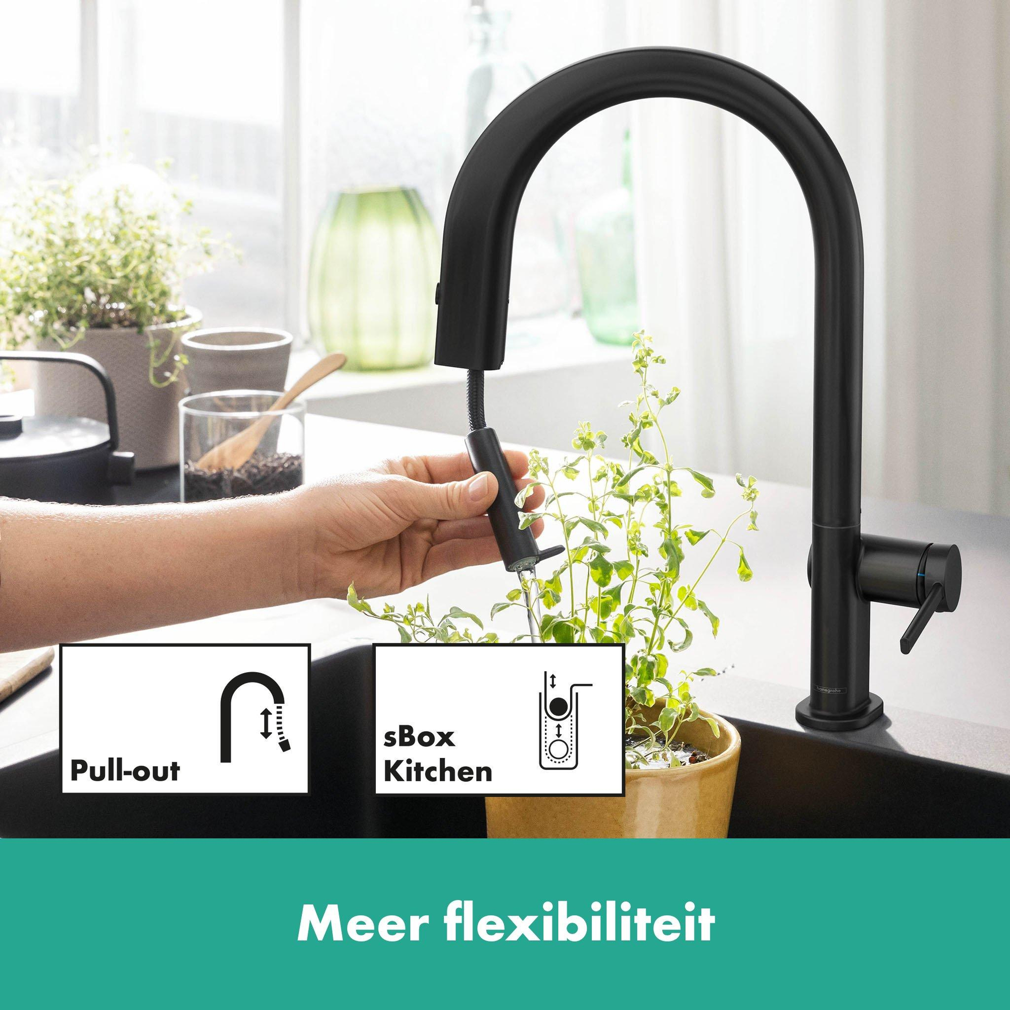 Avec un angle de rotation réglable à 60°, 110° ou 150° et une longueur d'extension jusqu'à 76 cm, ce système offre une flexibilité maximale. L'alimentation en eau séparée permet de passer facilement de l'eau filtrée à l'eau non filtrée, ce qui vous apporte beaucoup de commodité. Le jet laminaire assure un débit d'eau calme et sans éclaboussures, tandis que le bouton-poussoir sur la sortie rend l'eau filtrée immédiatement disponible. Grâce au guidage de tuyau sBox, tout reste fluide et propre, ce qui facilite l'installation et l'utilisation quotidienne. Vous profitez ainsi d'un confort et d'une facilité d'utilisation optimaux dans votre cuisine.