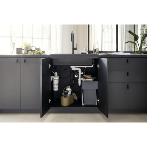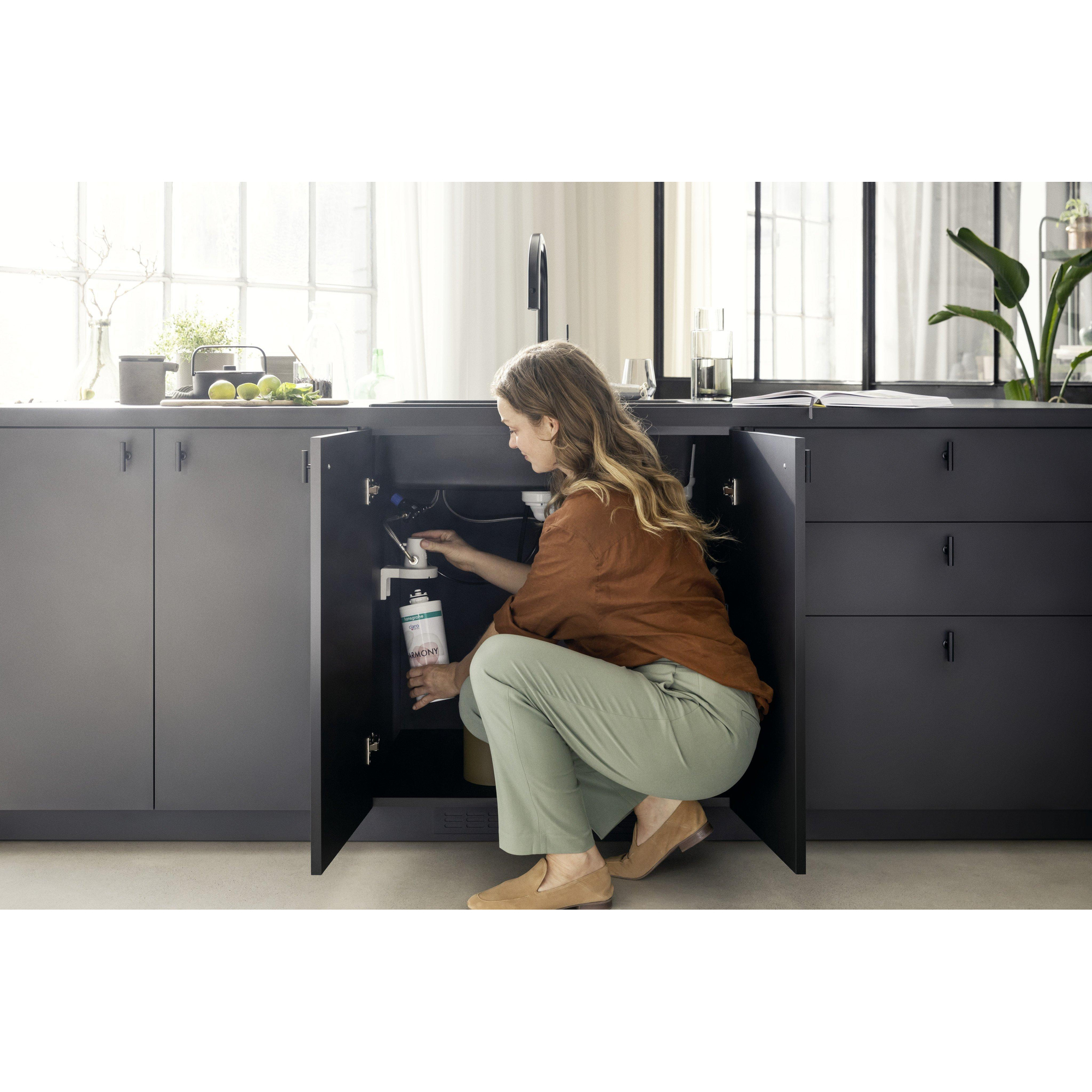 Avec une plage de rotation réglable à 60°, 110° ou 150°, vous adaptez facilement le robinet à vos besoins en cuisine. Le sBox intégré assure un guidage fluide et libre du tuyau extensible jusqu'à 76 cm, vous permettant d'atteindre facilement chaque coin de votre évier. L'alimentation en eau séparée permet de basculer entre l'eau filtrée et non filtrée via un bouton-poussoir pratique. Vous avez ainsi toujours la bonne qualité d'eau à portée de main, sans tracas.
