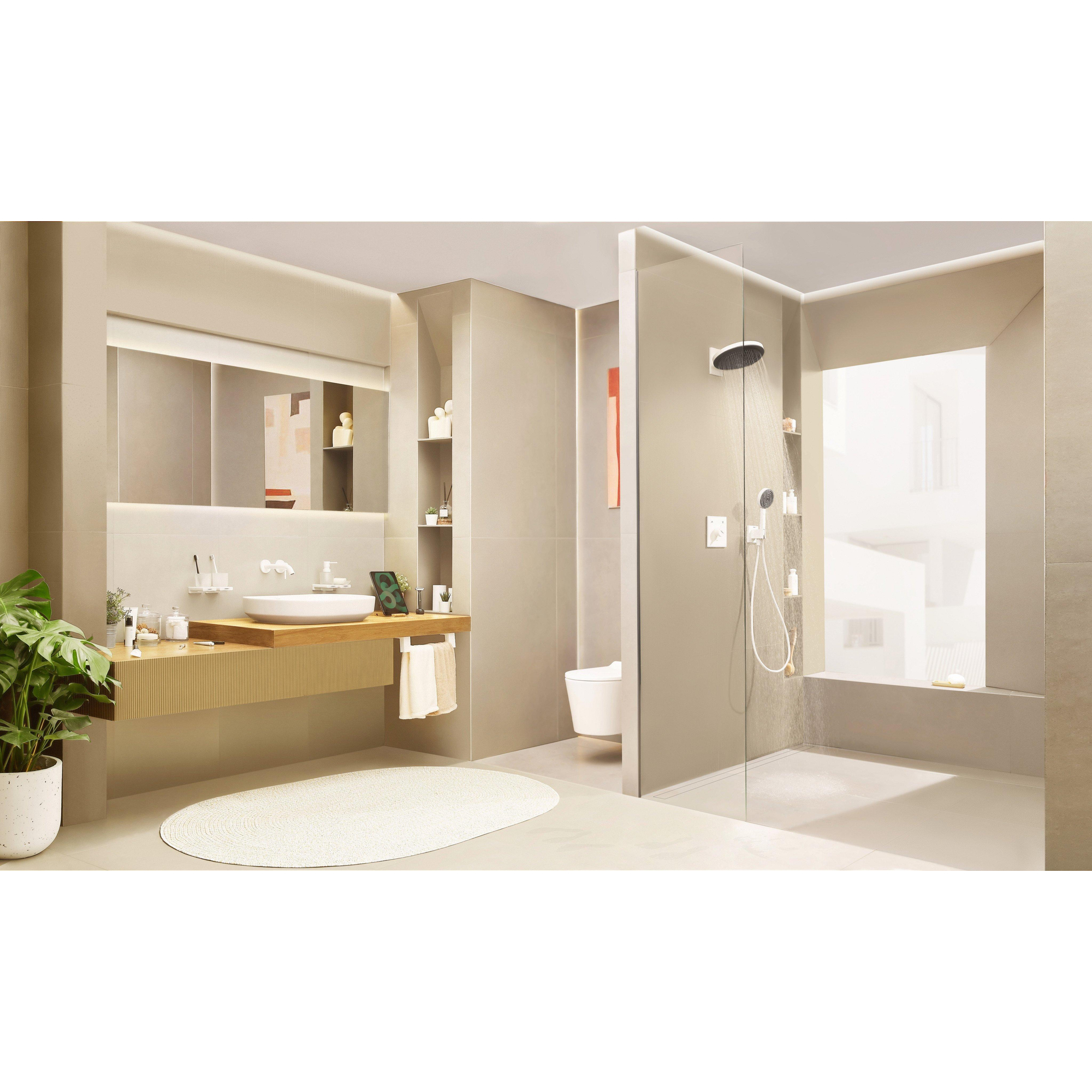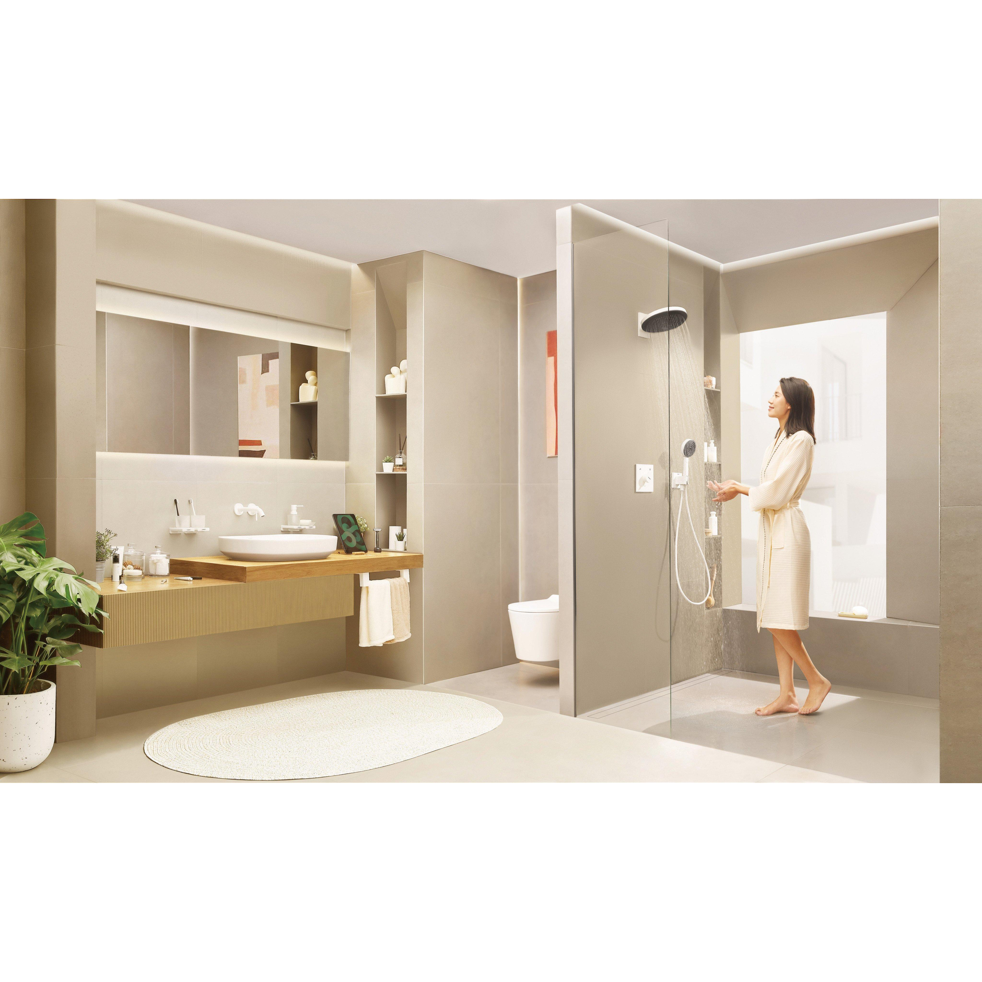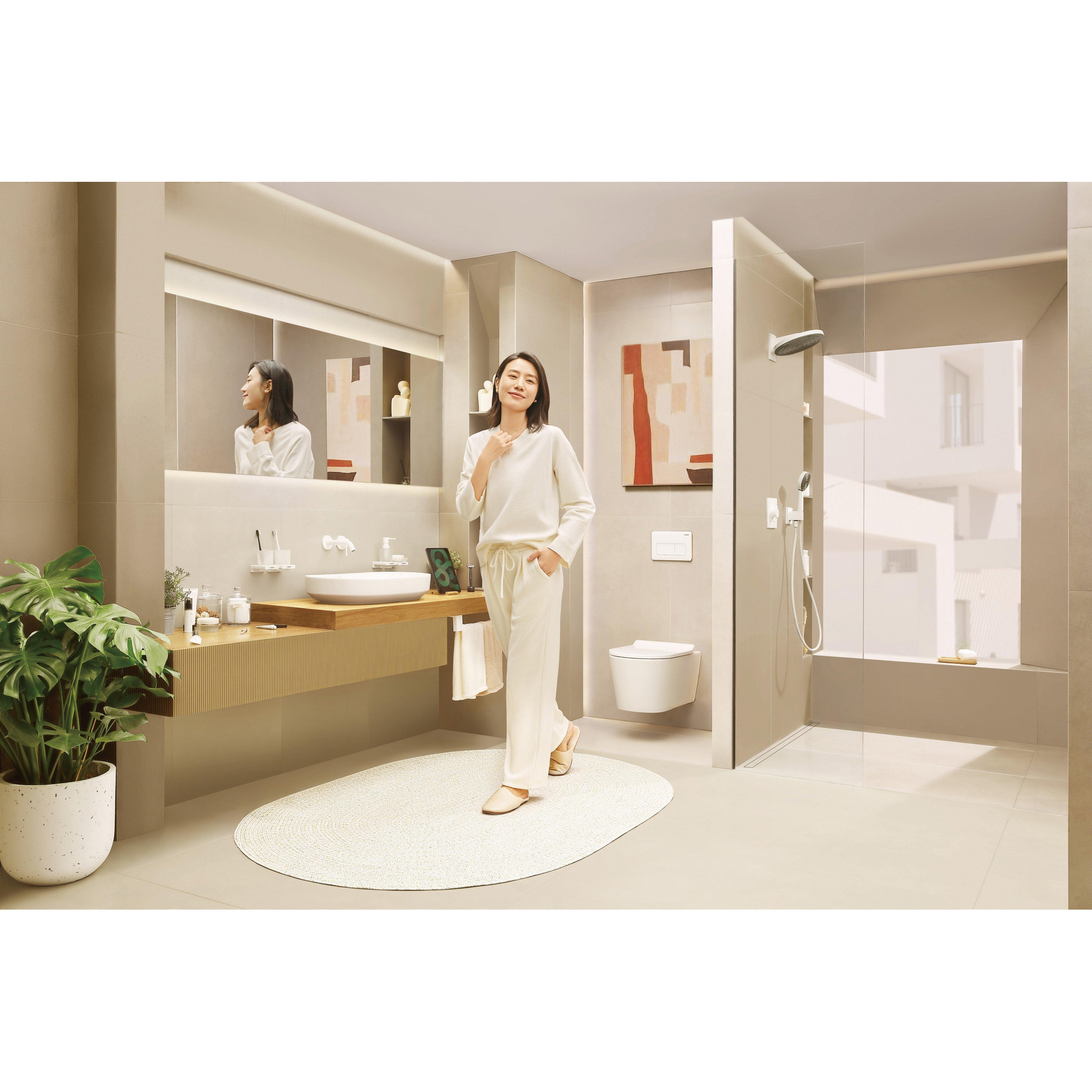 Le robinet est conçu pour la facilité d’utilisation et le confort. La commande mono-commande est placée latéralement, ce qui réduit les gouttes d’eau et les traces de calcaire sur le robinet. Vous pouvez monter la poignée à gauche ou à droite du bec, afin d’adapter parfaitement le robinet à vos souhaits et à l’agencement de votre salle de bains. Le jet d’eau est enrichi en air (AirPower), ce qui réduit les éclaboussures et procure une sensation agréable sur la peau. De plus, la limitation de température est réglable, offrant une sécurité supplémentaire, notamment dans les foyers avec enfants. Le système encastré crée de l’espace sur votre lavabo et assure une finition nette sans tuyaux visibles.