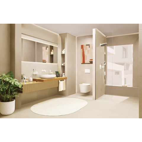 - Finition blanche mate qui s’adapte parfaitement aux styles de salle de bains modernes