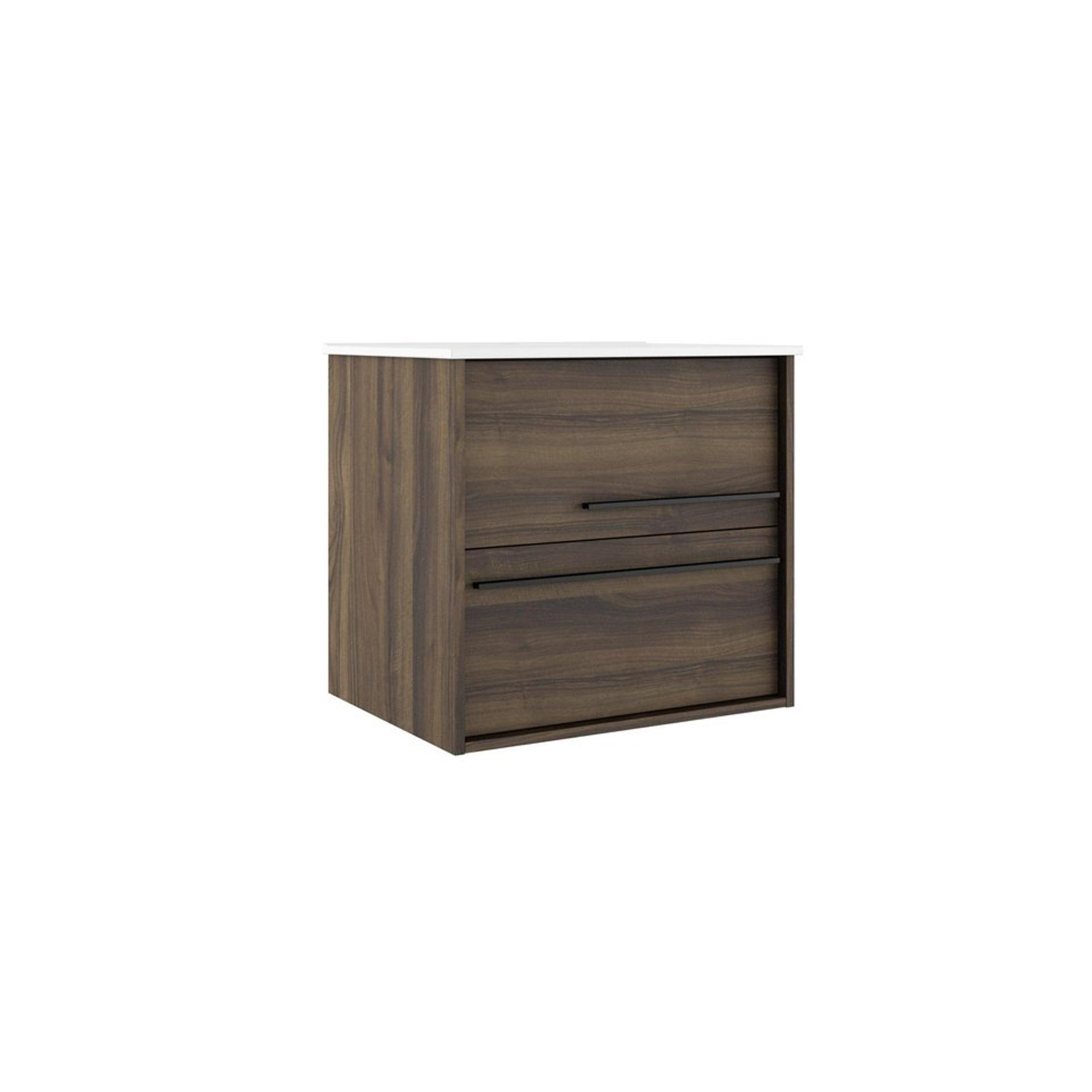 Saniclass Prime Essential Ensemble meuble de salle de bains - 60x55x46cm - 1 vasque rectangulaire blanche - 1 trou de robinet - 2 tiroirs - miroir rectangulaire - noyer (bois)
