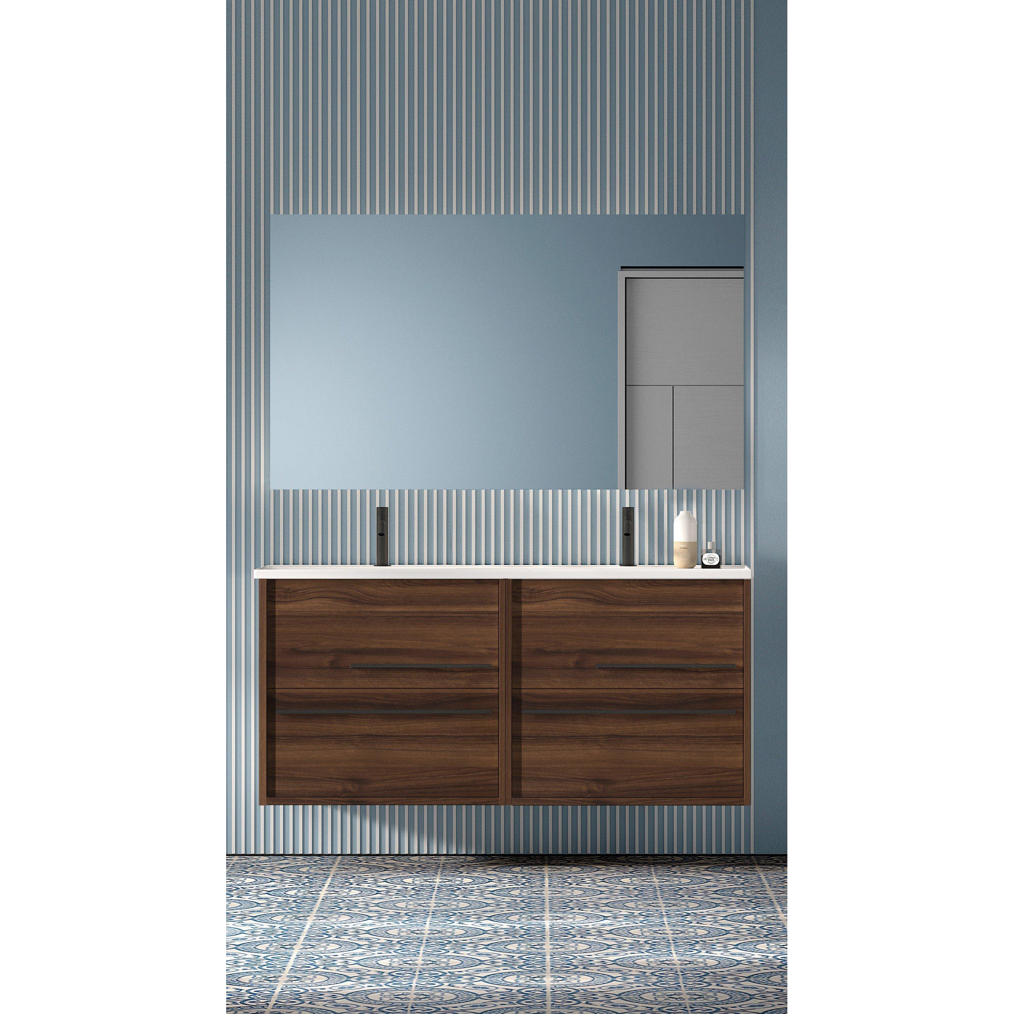 Saniclass Prime Essential Ensemble meuble de salle de bains - 120x55x46cm - 2 vasques rectangulaires blanches - 2 trous de robinet - 4 tiroirs - miroir rectangulaire - noyer (bois)