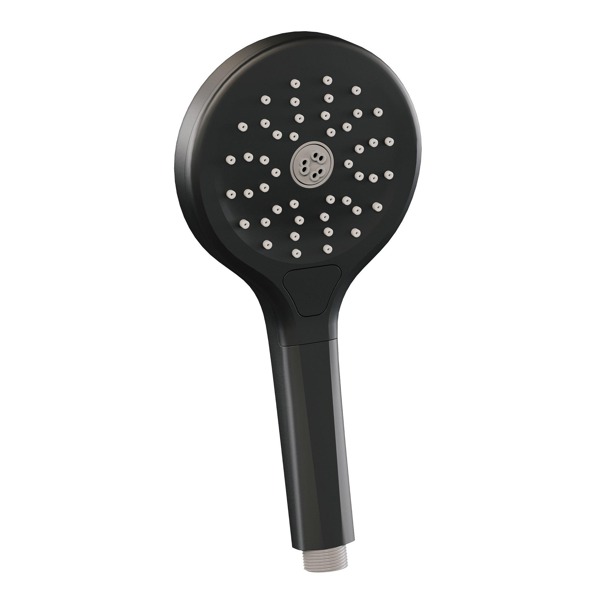BRAUER Black Carving Douche de pluie thermostatique encastrée - boutons-poussoirs - SET 57 - pomme de douche 20cm - bras mural courbé - douchette 3 jets - flexible de douche - coude d'alimentation mural - noir mat