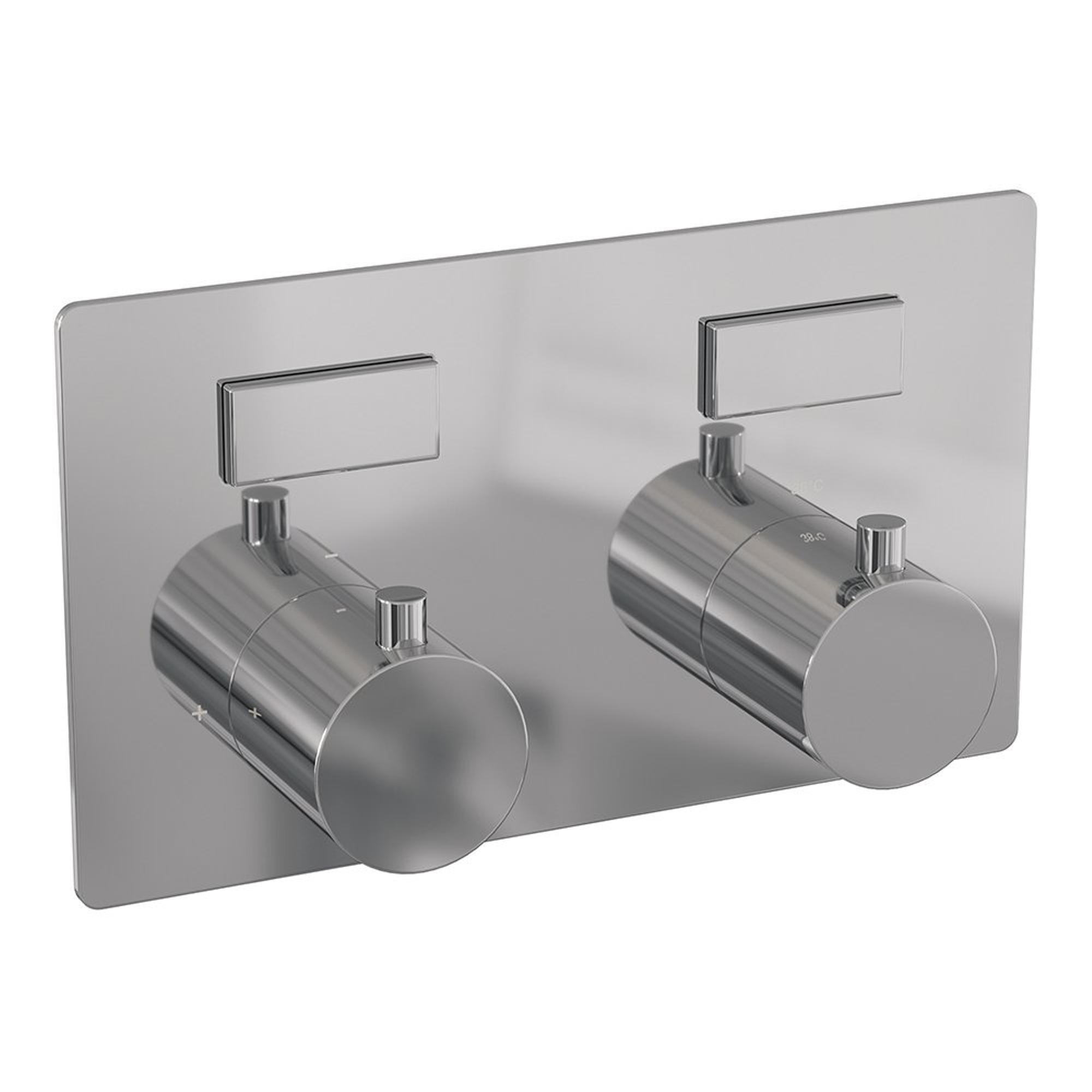 Brauer Chrome Edition douche thermostatique à effet pluie avec bouton poussoir 55 20cm pommeau de douche bras mural droit 3 positions douche à main flexible de douche raccord mural coude chromé