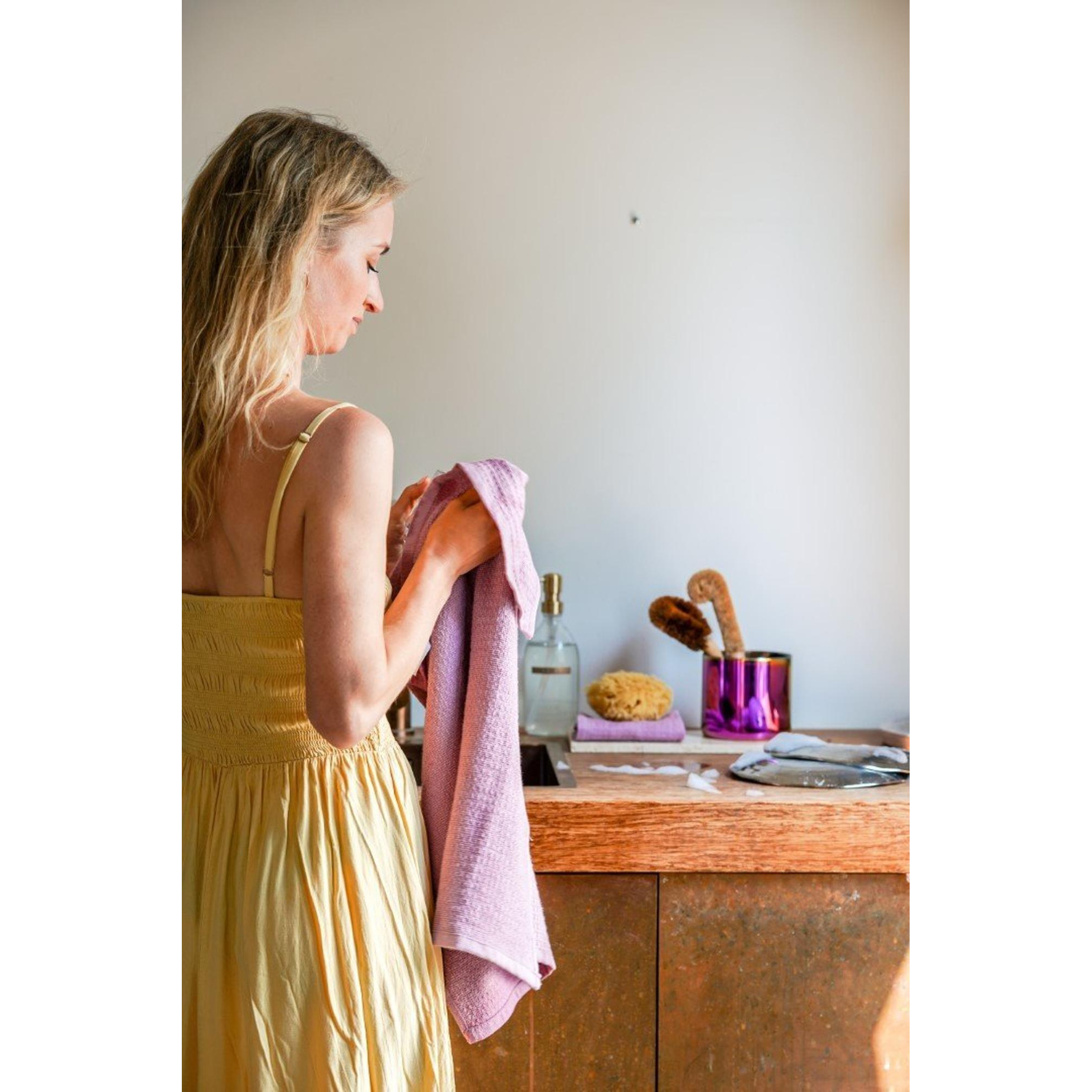 Avec leur douce couleur lilas et leur élégant tissage gaufré, ces torchons apportent immédiatement de l’ambiance à votre cuisine ou votre salle de bains. La teinte est subtile, chaleureuse et un peu différente des habituels tons blanc ou gris, ce qui vous permet de créer facilement une touche personnelle. Suspendez-les sur un joli crochet près du lavabo, combinez-les avec des accessoires assortis dans des tons pastel ou naturels, ou utilisez-les comme accent stylé dans un intérieur minimaliste. Le tissu gaufré structuré offre un aspect luxueux et fait d’un simple torchon un véritable élément de décoration. Vous combinez ainsi des accessoires de cuisine ou de salle de bains pratiques avec un intérieur harmonieux jusque dans les moindres détails.