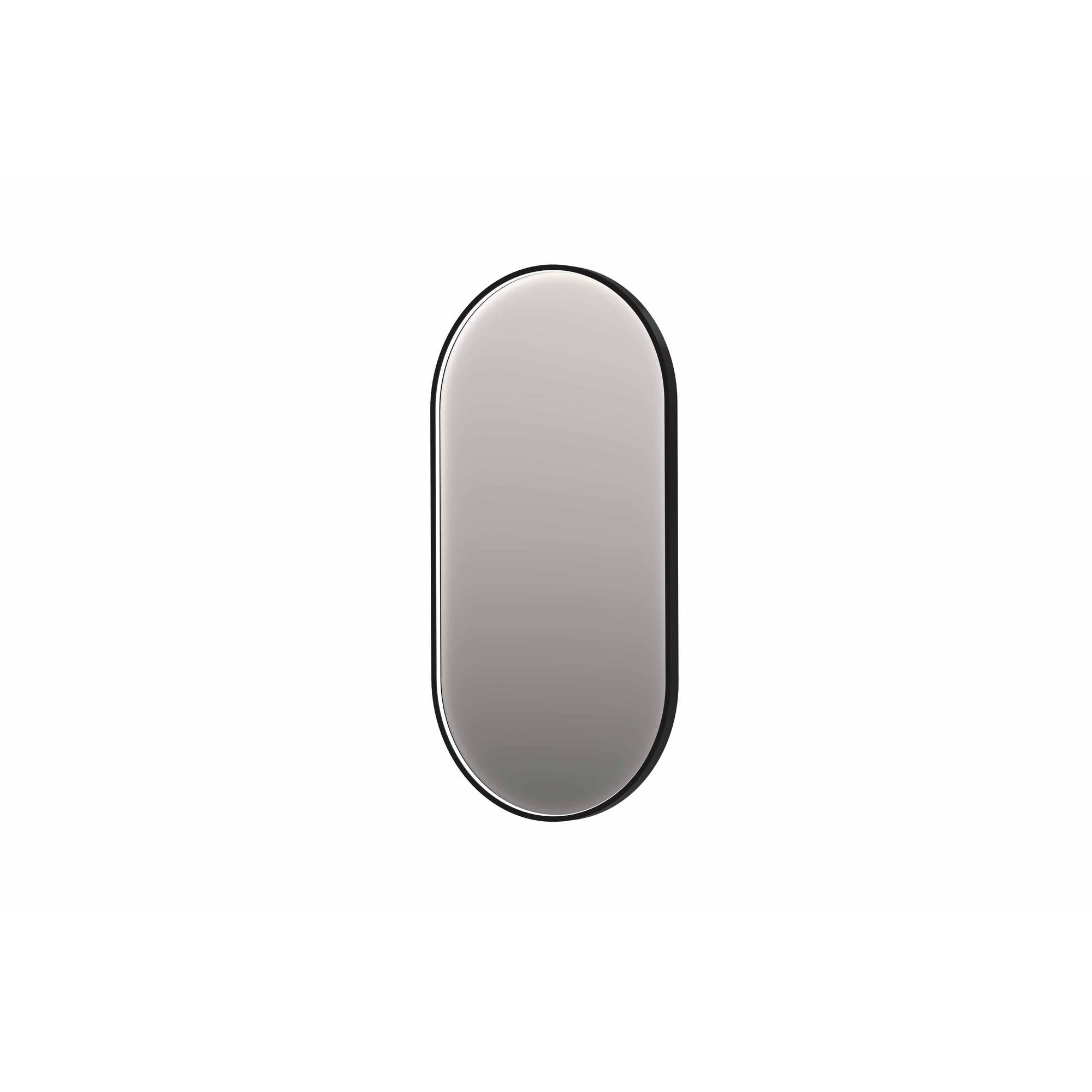INK SP21 miroir - 100x4x50cm ovale en cadre acier incl indir LED - chauffage - changement de couleur - dimmable et interrupteur - métal brossé noir