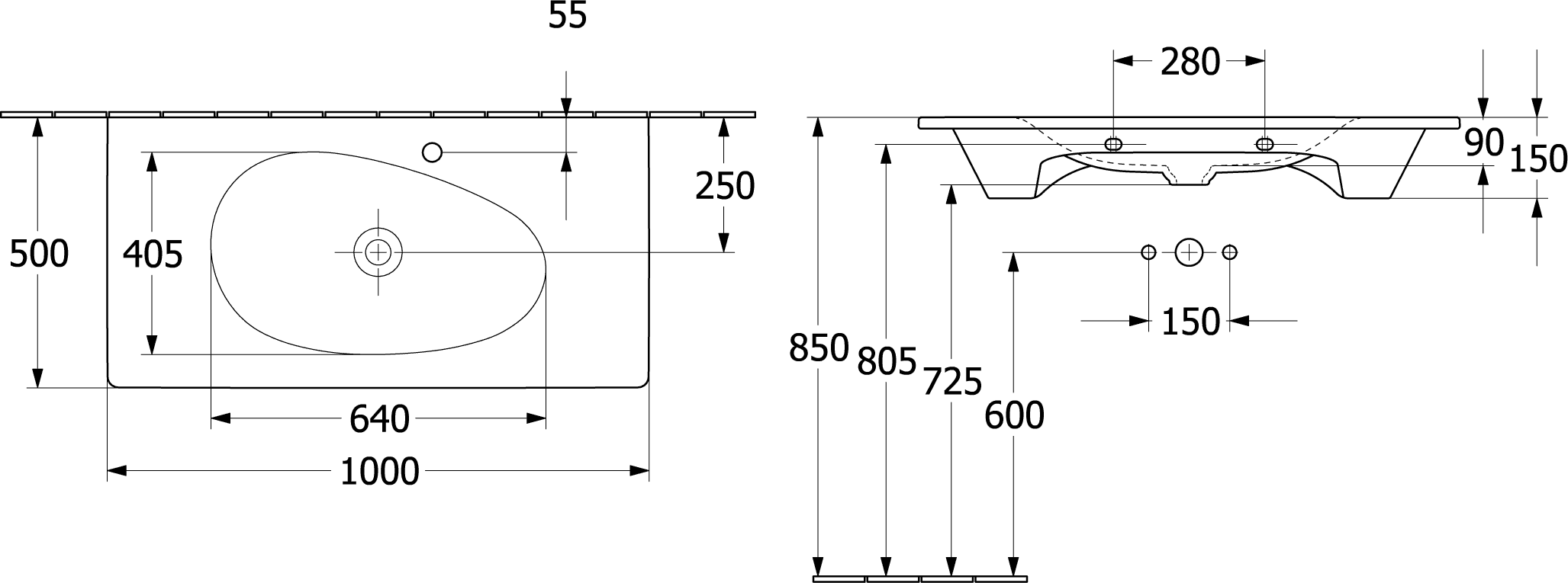 Villeroy & Boch Antao lavabo encastrable droit 100x50cm avec robinetterie C+ amande