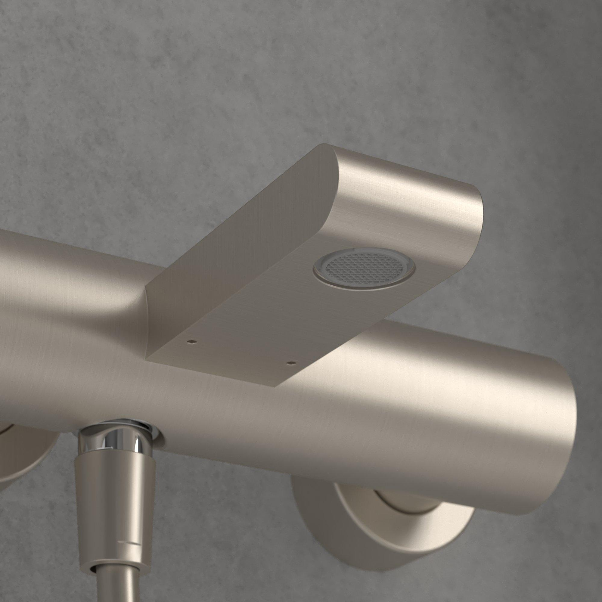 - Nickel brossé mat (aspect inox) pour une apparence luxueuse et sereine qui se marie parfaitement avec les styles de salle de bains modernes.