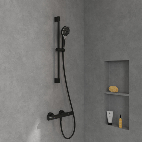 La finition noire mate donne immédiatement à votre douche une apparence haut de gamme et axée sur le design. Cela fait de ce robinet un parfait complément aux pommes de douche, barres de douche et parois de douche en verre avec profilés noirs. Le design rond offre un aspect doux et élégant, ce qui permet de garder une atmosphère calme et non surchargée, même dans les petits espaces de douche. La couleur d’accent subtile et les lignes épurées s’harmonisent aussi bien avec des carreaux clairs qu’avec des styles de salle de bains sombres et audacieux. Vous utilisez ainsi ce robinet non seulement comme élément fonctionnel, mais également comme déclaration de style qui donne un supplément de caractère à votre salle de bains.