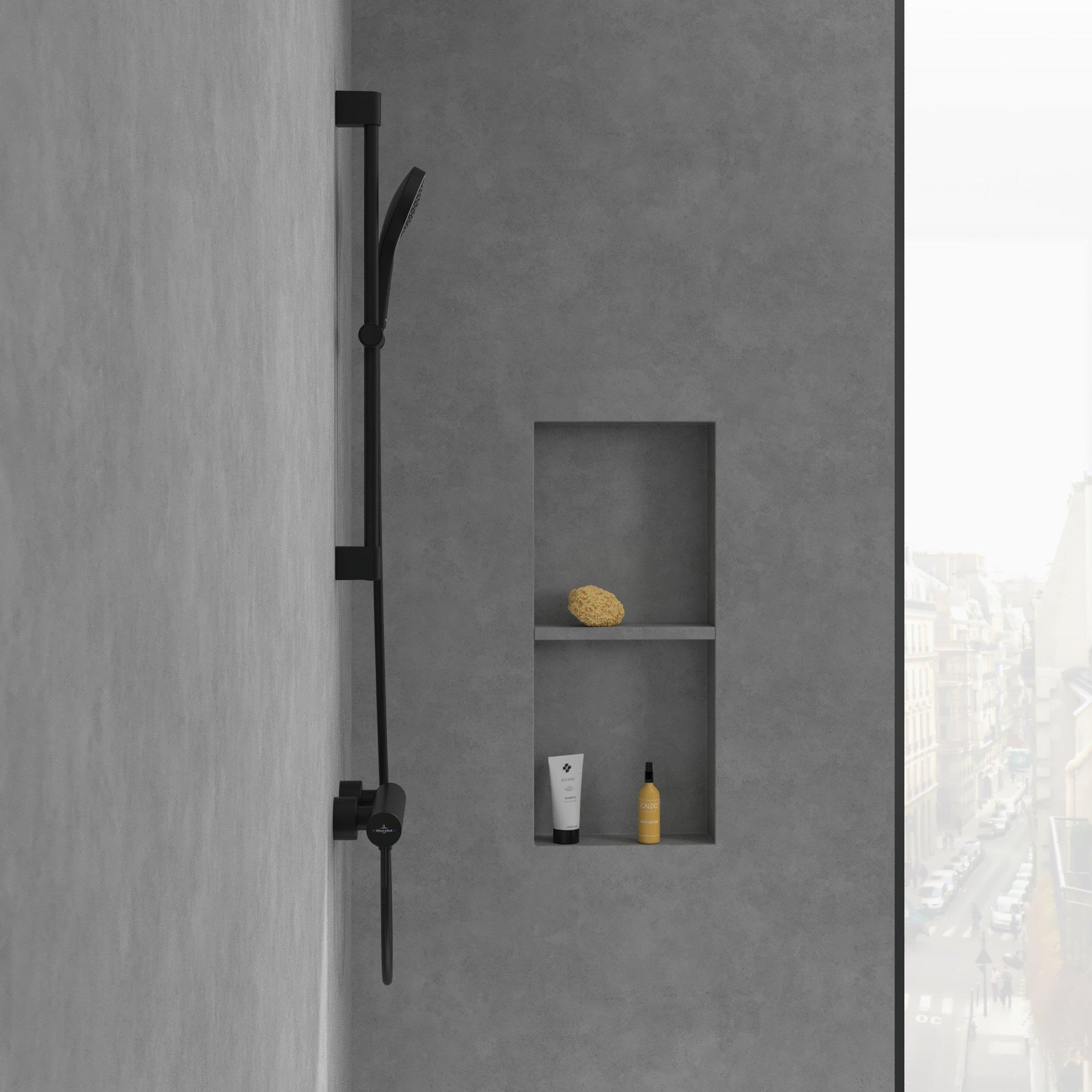 La finition noire mate confère immédiatement à votre espace de douche une allure haut de gamme et contemporaine. Combinée à des carreaux clairs, elle crée un contraste fort, tandis que dans une salle de bains sombre, elle apporte justement une atmosphère luxueuse digne d’un hôtel. La protection de surface revêtue aide à conserver une couleur profonde et uniforme, de sorte que le robinet conserve son aspect haut de gamme même après des années d’utilisation. Ce robinet est particulièrement mis en valeur en combinaison avec des barres de douche, des pommes de douche de tête ou d’autres robinets noirs, ce qui vous permet de créer facilement un ensemble harmonieux. Vous construisez ainsi, étape par étape, un espace douche réfléchi et stylé qui procure du plaisir jour après jour.