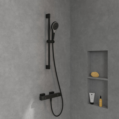 Vous recherchez un mitigeur thermostatique de douche fiable, qui s’intègre dans une salle de bains moderne et épurée et qui rend en plus la douche confortable évidente ? Avec ce robinet mural apparent angulaire en noir mat, vous optez pour une solution pratique et élégante en un seul produit. Grâce au fonctionnement thermostatique, vous profitez d’une température de l’eau constante, même lorsqu’un autre robinet est ouvert ailleurs dans la maison. Cela rend le produit particulièrement adapté aux familles nombreuses, mais aussi aux petites salles de bains où le confort et la sécurité priment. La finition noire mate s’accorde parfaitement avec les intérieurs industriels, minimalistes ou modernes et se combine facilement avec d’autres accessoires de salle de bains noirs. Grâce au montage en apparent, c’est également un choix judicieux lors de rénovations ou lorsque vous souhaitez conserver les raccordements existants, sans travaux de démolition.
