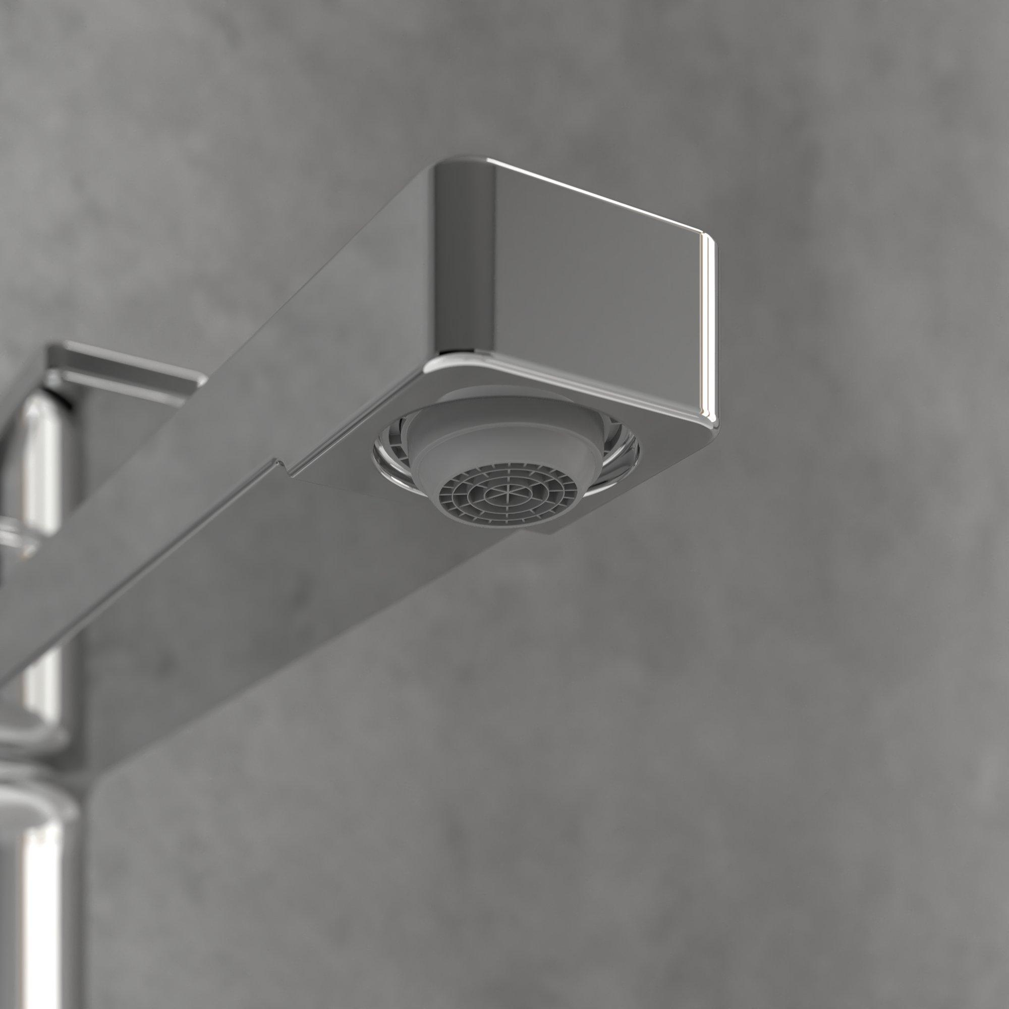 Le mousseur intégré enrichit le jet d’eau en air, ce qui vous offre un jet plein et doux, agréable sur la peau et plus économique en eau. Cela ne profite pas seulement à votre confort, mais représente aussi un choix réfléchi pour votre consommation d’eau. L’aérateur spécial situé sur le bec fin est conçu pour réduire les éclaboussures et rendre l’utilisation quotidienne aussi agréable que possible, que vous vous laviez simplement les mains ou que vous nettoyiez votre visage en profondeur. Grâce à la technologie Air Plus, vous profitez d’une qualité de jet supérieure, tout en contribuant discrètement à une salle de bains plus durable. Vous associez ainsi luxe et confort à une solution pratique et tournée vers l’avenir.
