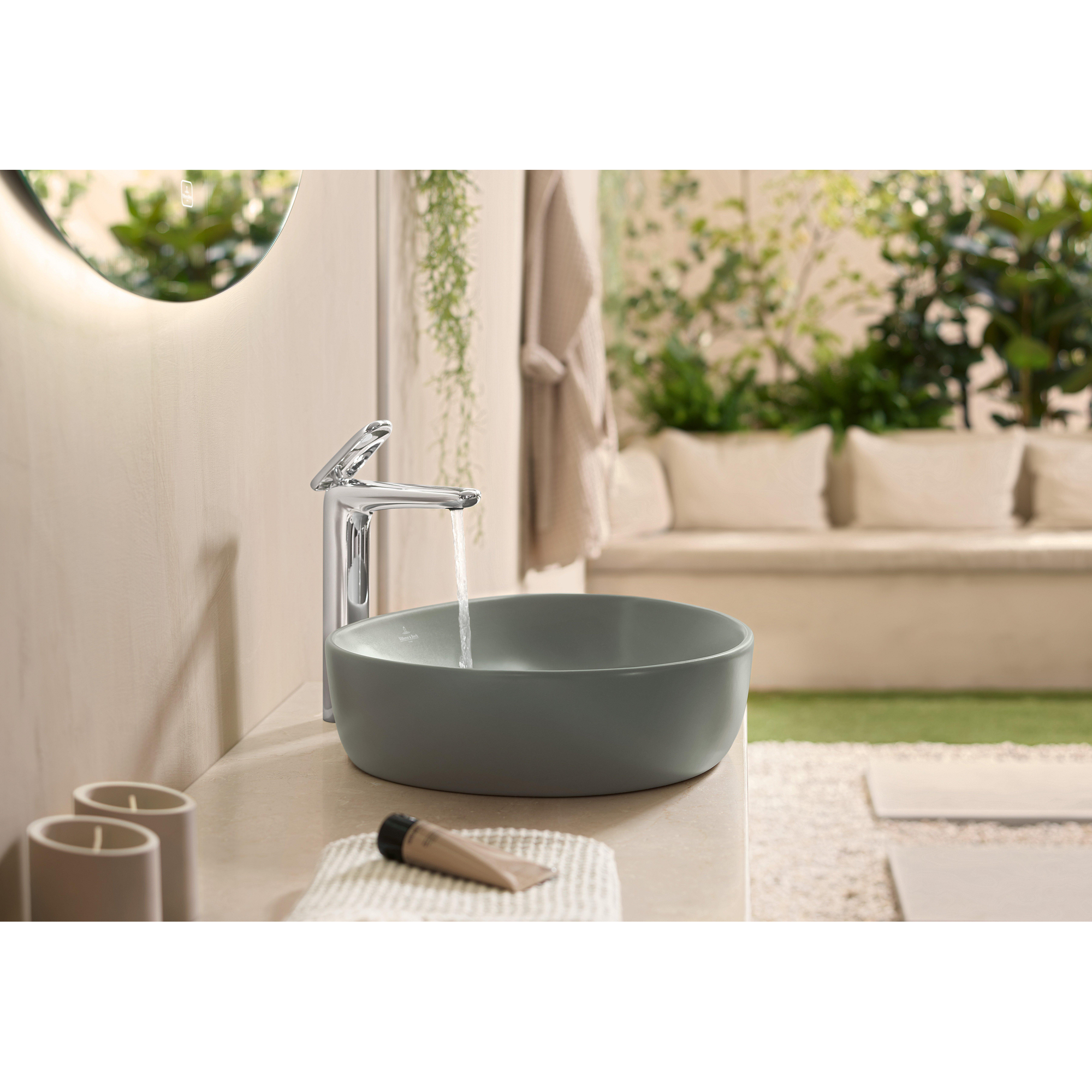 Vous recherchez un mitigeur de lavabo haut qui soit à la fois confortable à utiliser et un véritable accroche-regard dans votre salle de bains ? Alors ce élégant mitigeur monocommande est un choix judicieux. Grâce au modèle rehaussé, il est parfait à combiner avec une vasque à poser ou un meuble de lavabo spacieux, tandis que la forme élancée et ronde assure une apparence calme et naturelle. Les lignes douces ont un aspect raffiné, mais sont également pratiques : vous nettoyez facilement toutes les surfaces et profitez chaque jour d’un jet d’eau confortable. Ce robinet est idéal pour les salles de bains modernes où le design et la facilité d’utilisation vont de pair, mais il s’intègre tout aussi bien dans un style intemporel ou scandinave avec de nombreux matériaux naturels. Si vous recherchez un mitigeur de qualité durable qui vous accompagnera pendant de nombreuses années et qui, en plus, économise l’eau, ce modèle répondra parfaitement à vos attentes.